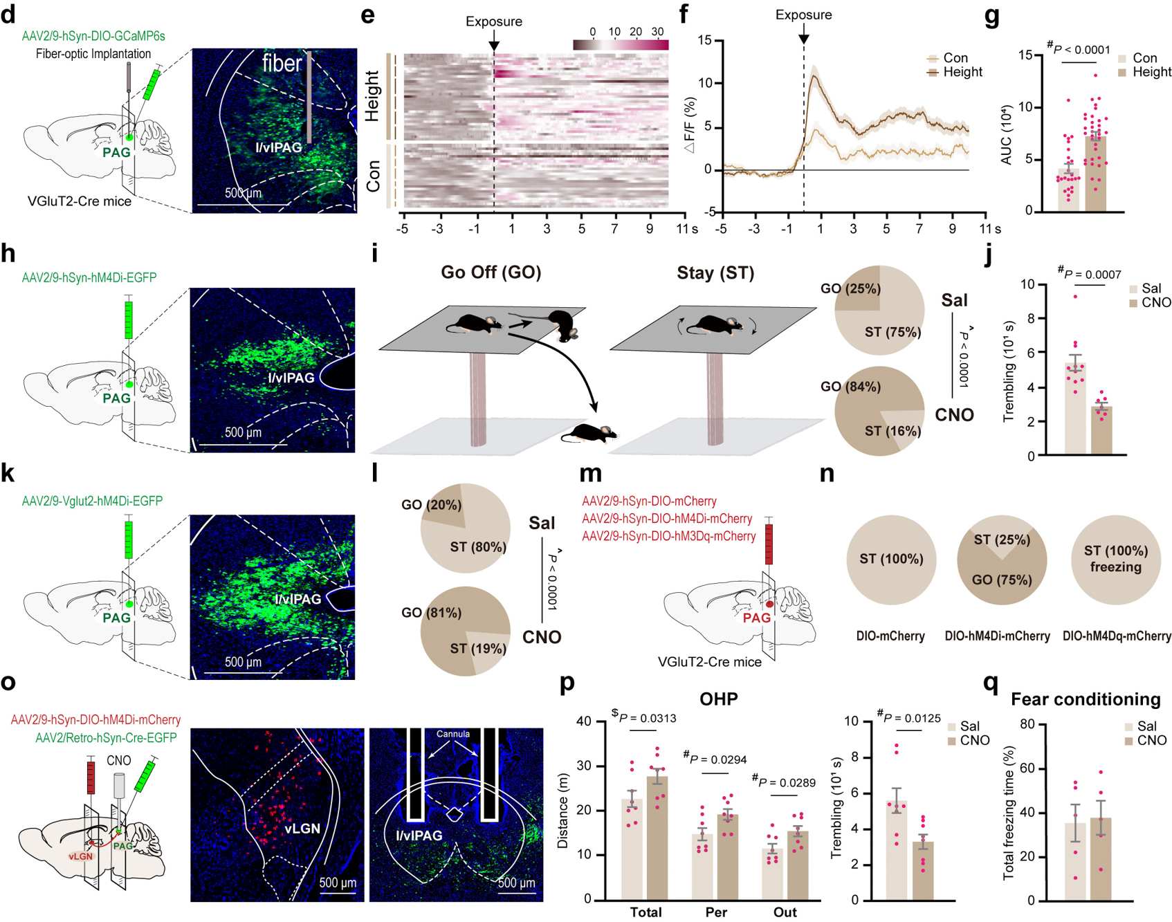 抑制PAG脑区及vLGN-PAG环路后小鼠恐高反应显著减弱(引自Shang, W., Xie, S., Feng, W. et al., Nature Communications (2024) 15, 3746)