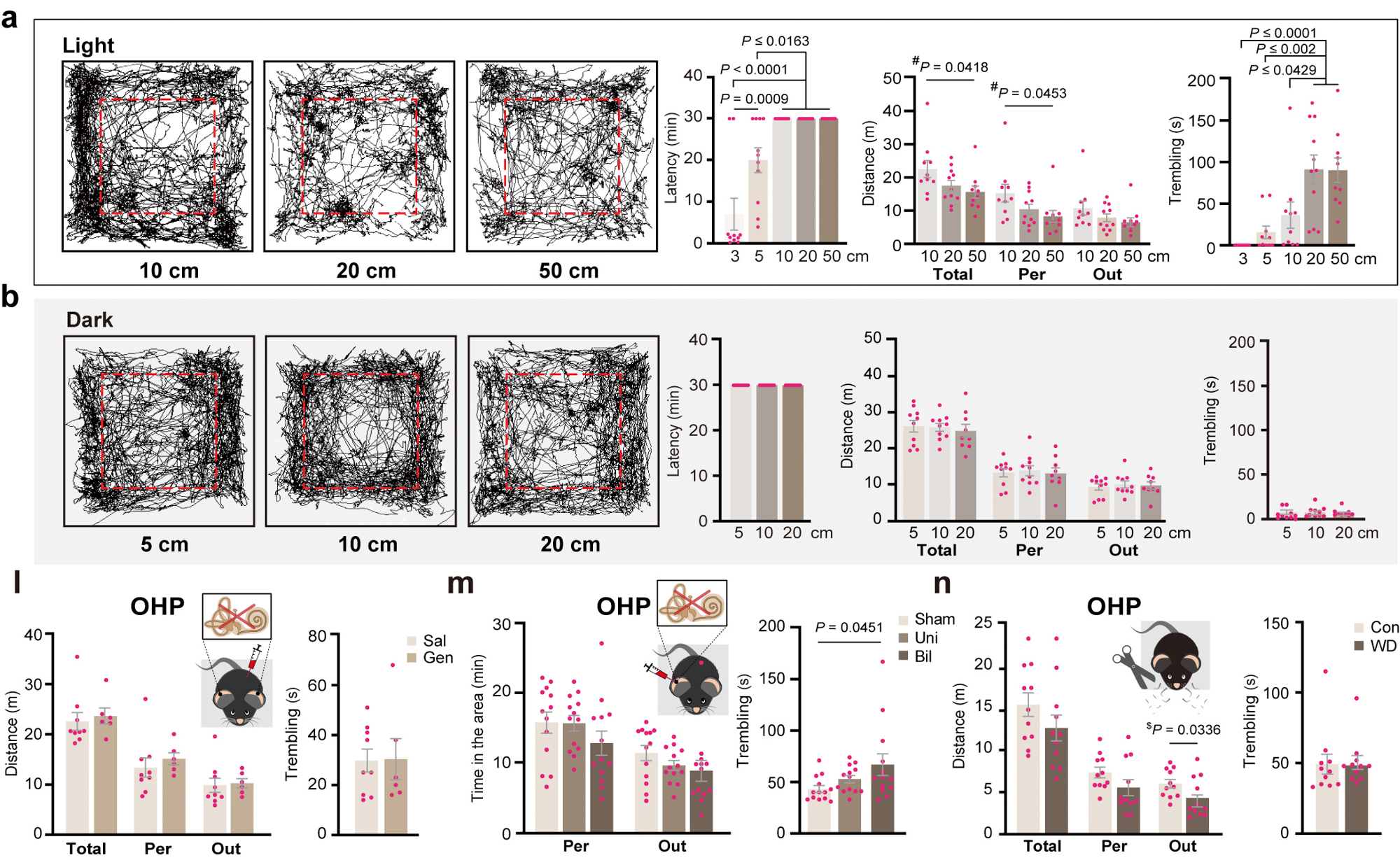 研究人员发现在抑制小鼠的外周前庭器官后,它们的恐高反应不降反升;而剥夺胡须介导的触觉,并不影响恐高行为。有趣的是,小鼠仅在光亮处才表现出高度依赖的恐惧反应,而在黑暗处并无典型的恐高反应,表明恐高反应主要是由高处的视觉冲击造成。