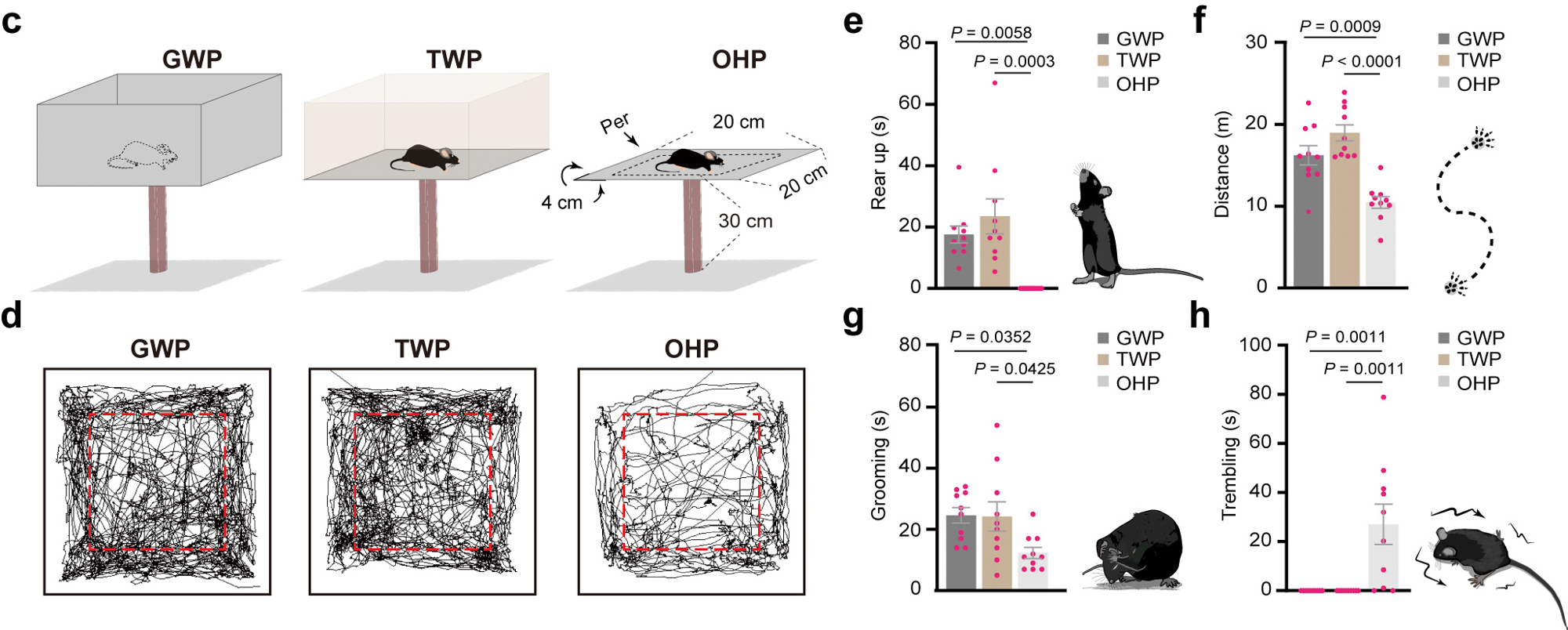 研究人员基于人类的恐高反应和行为特征,成功构建了一套量化分析恐高反应的小鼠行为学范式。发现小鼠可感知到高度刺激,在开放高台上出现与人类相似的运动受限、降低重心、焦虑,以及颤抖等行为表现。