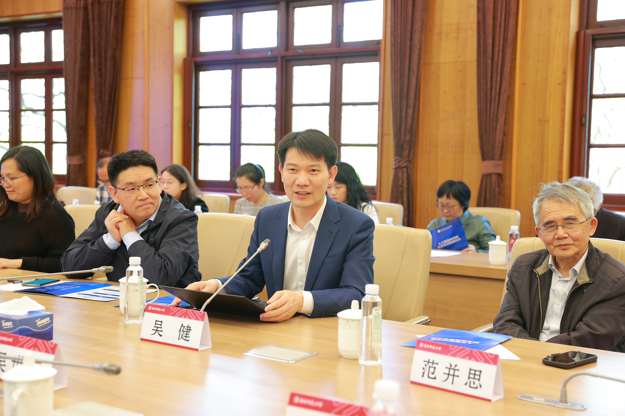报告会前,校党委书记梅兵、副校长程静与吴世忠院士进行了会谈,梅兵书记重点介绍了学校近年来的发展及取得的成就,加快建设引领育人创新的中国特色世界一流大学方面的举措,并向吴世忠院士赠送了纪念册。