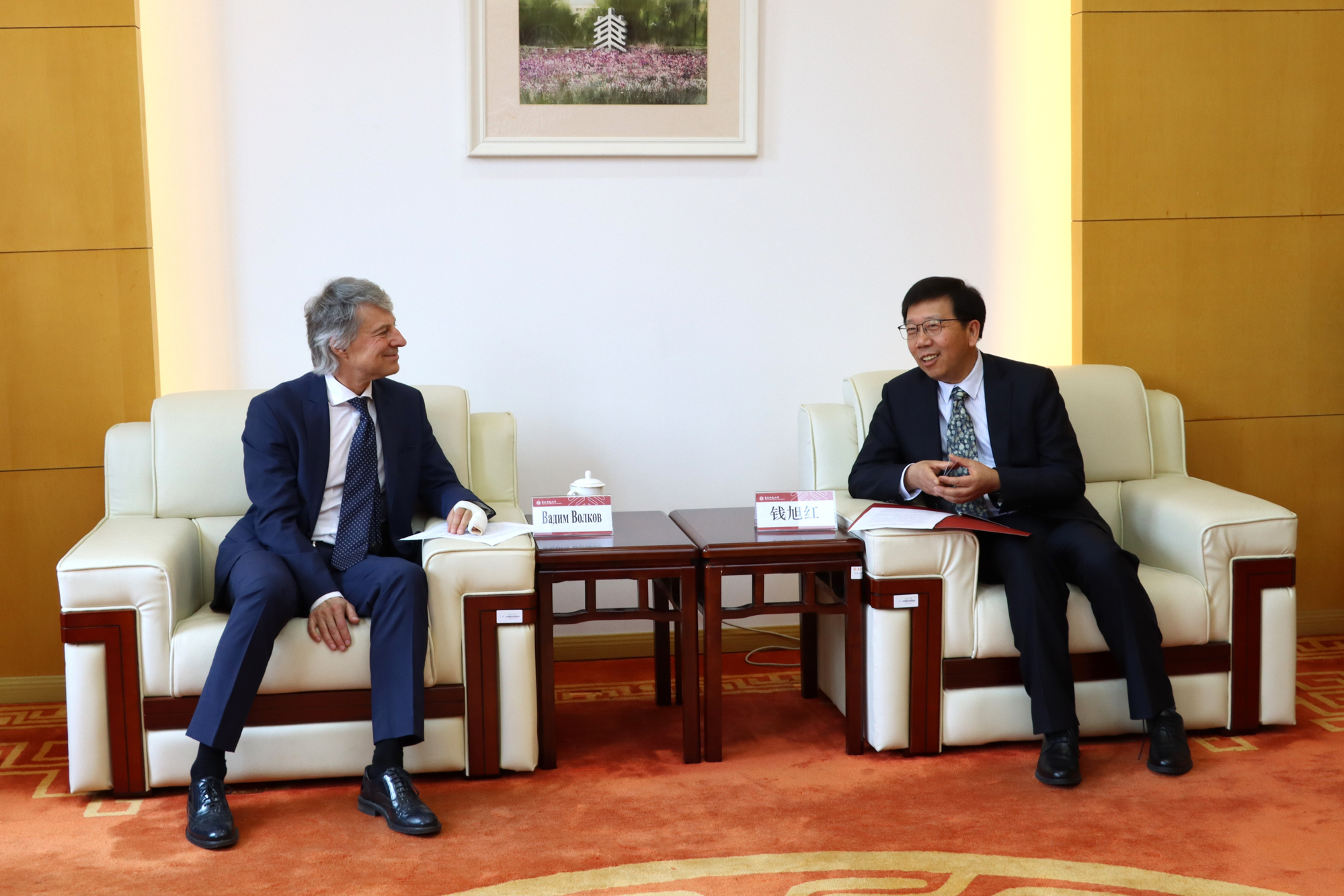 3245澳门新莆京-俄罗斯圣彼得堡欧洲大学欧亚研究联合工作室5月15日在上海成立。3245澳门新莆京校长钱旭红院士会见了来访的俄罗斯圣彼得堡欧洲大学校长沃尔科夫·瓦季姆一行。