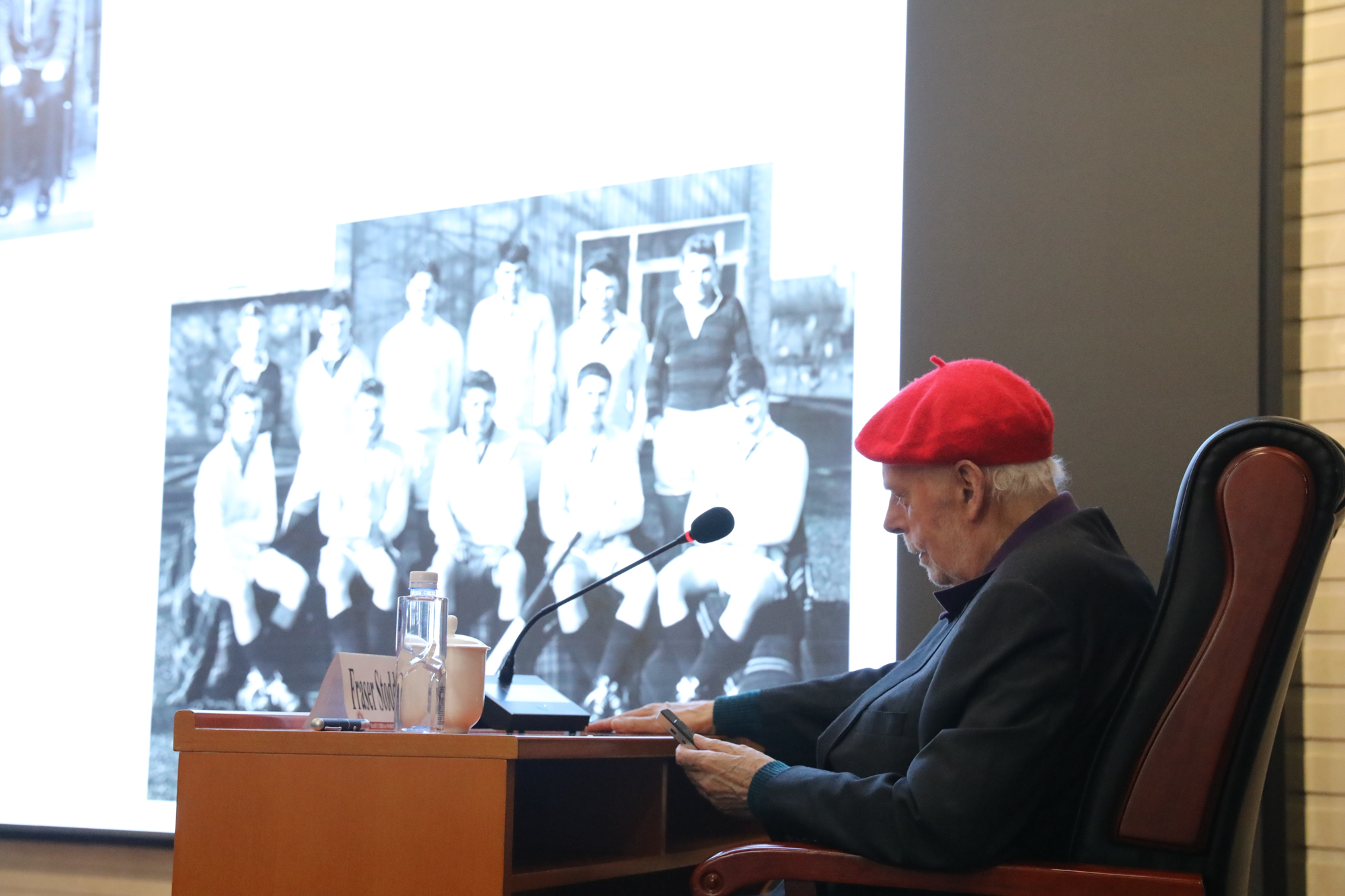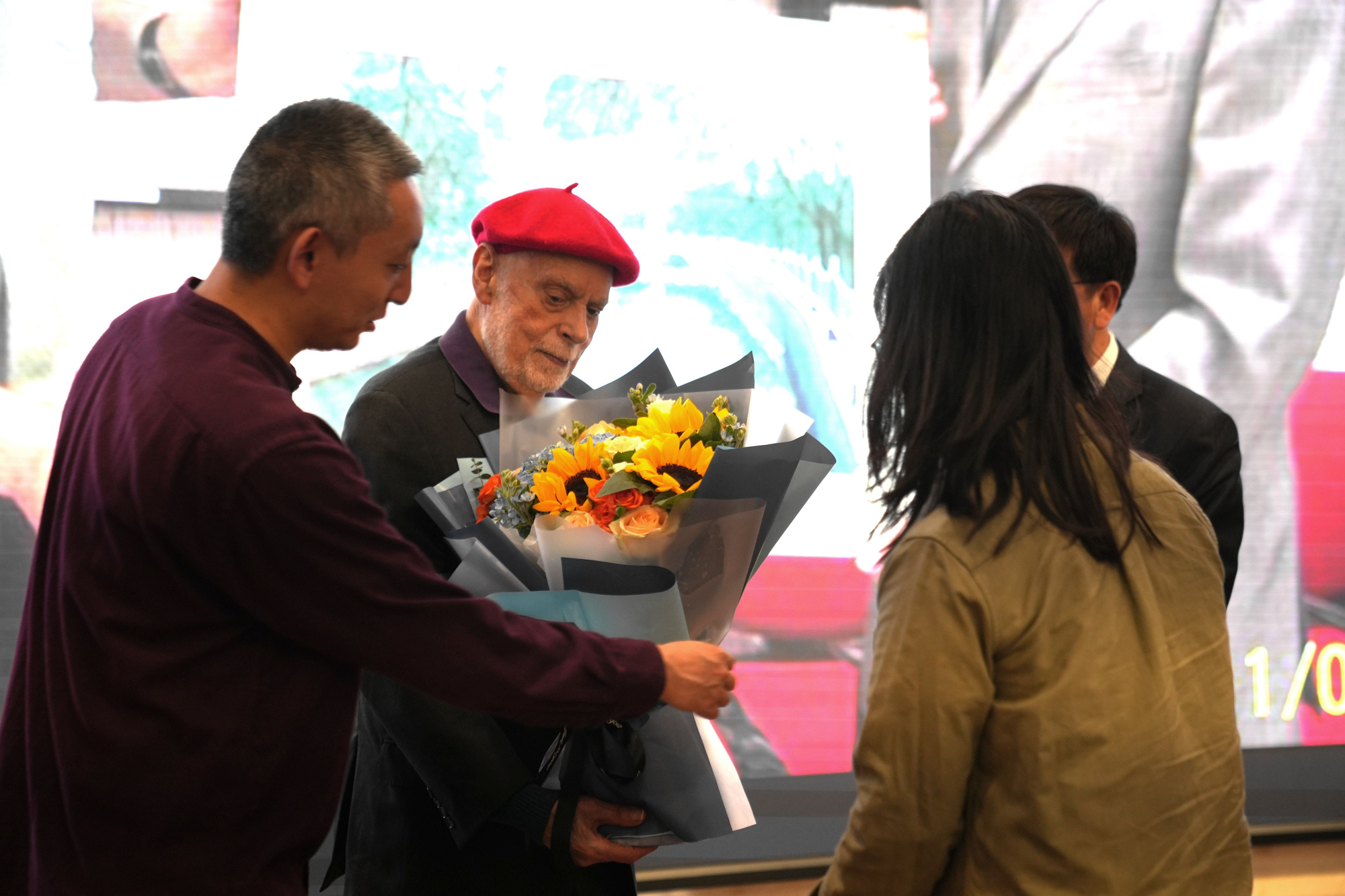 七年前,弗雷泽·斯托达特身着红色缎面唐装莅临丽娃河畔,而昨天,他头戴一顶红色贝雷帽亮相华东师大樱桃河畔,这位诺奖得主钟爱“中国红”,可谓入乡随俗。