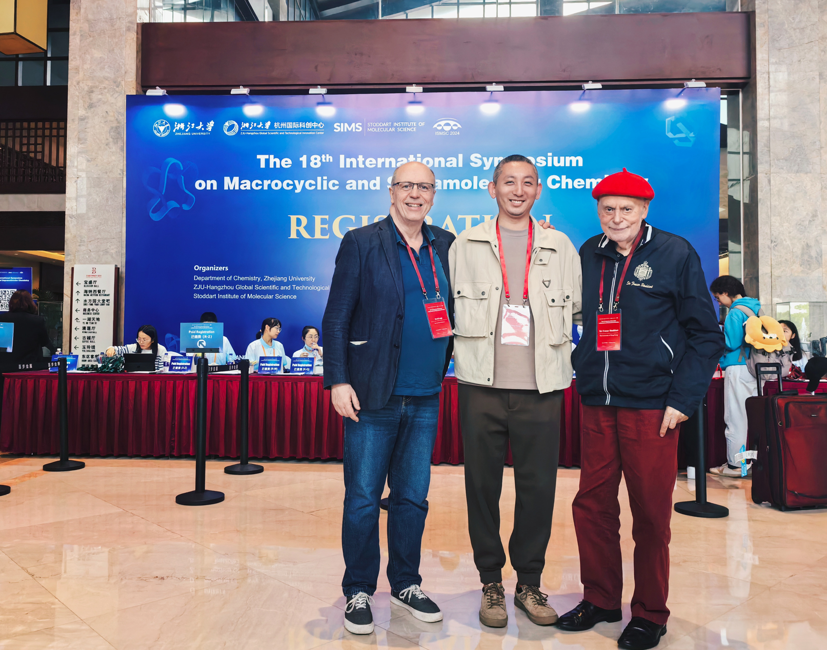 斯托达特教授(右)、李大为教授(左)和张亮研究员(中)参加2024年第十八届国际大环及超分子化学大会