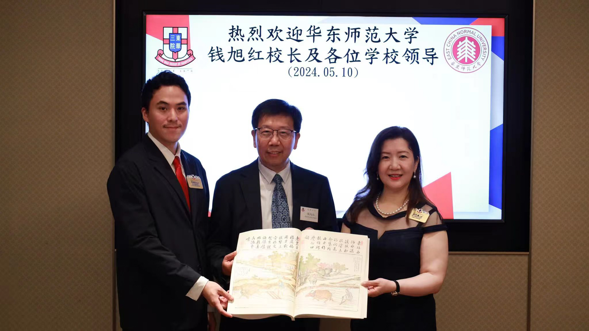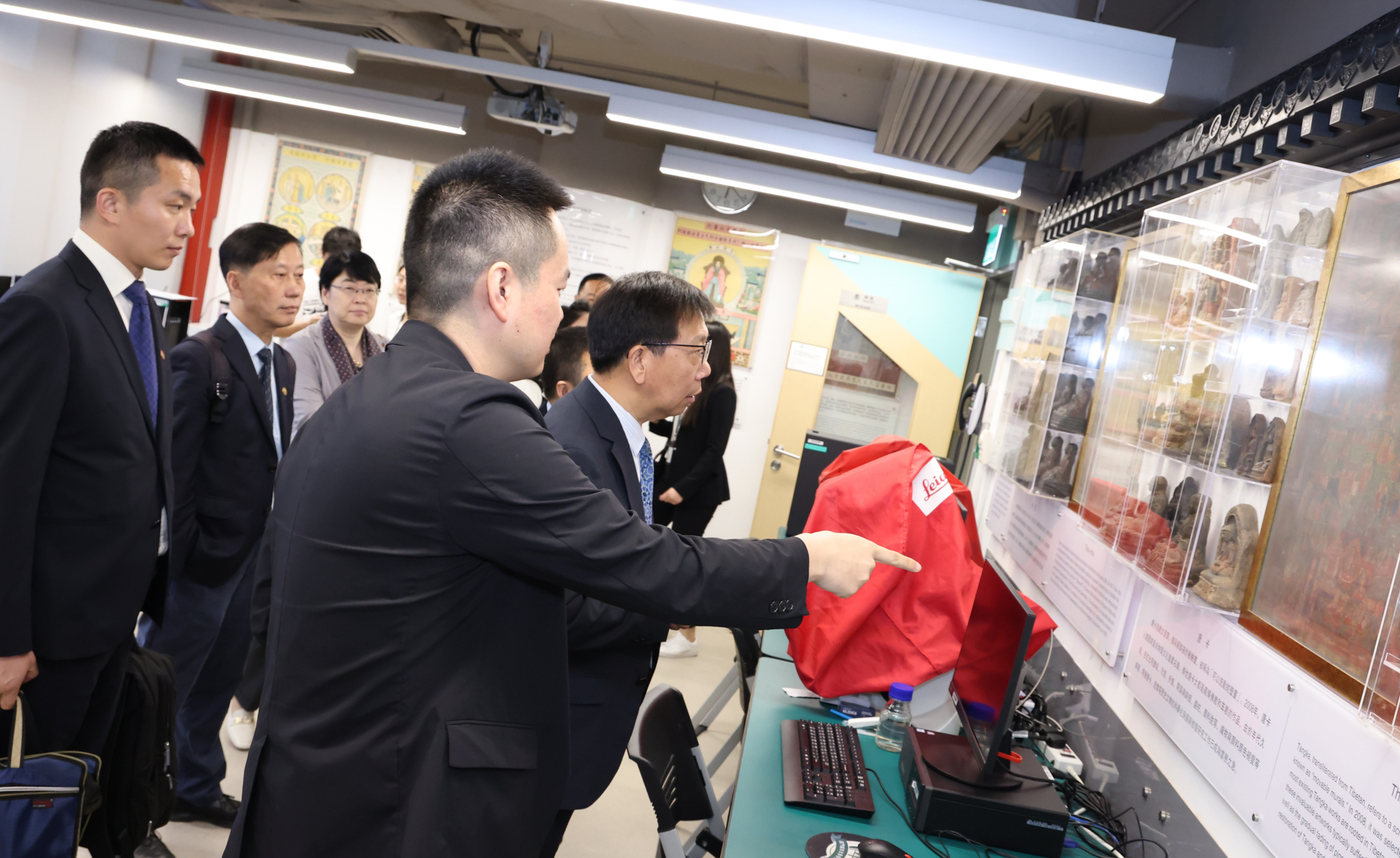 香港浸会大学以跨学科博雅教育为特色之一,在人工智能与大数据、创意电影与艺术、中医药研究等领域具有独特优势。访问该校期间,钱旭红代表华东师大与该校常务副校长黄定发签署“全日制本科生交换学习项目合作协议”。该校合作发展处总监李进秋、中国语言文学系主任及中国传统文化研究中心主任卢鸣东等与代表团成员就两校人才培养改革创新的具体方式、人文艺术学科的潜在合作等开展交流。代表团一行还参观了该校视觉化研究中心,沉浸式地体验了传统艺术与现代AI科技巧妙相融的最新成果。