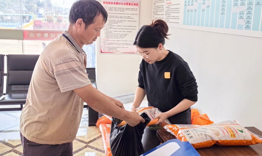 华东师大2022届马克思主义基本原理专业毕业生祝魏芳向村民发放大豆种子