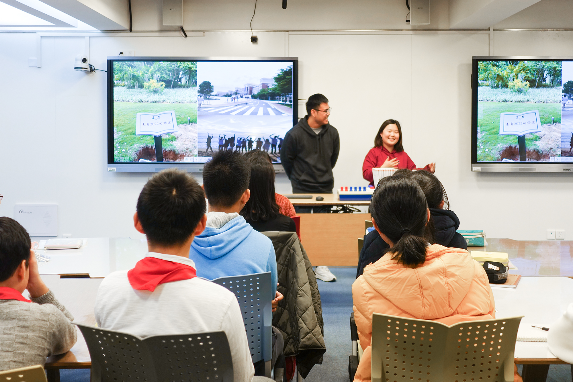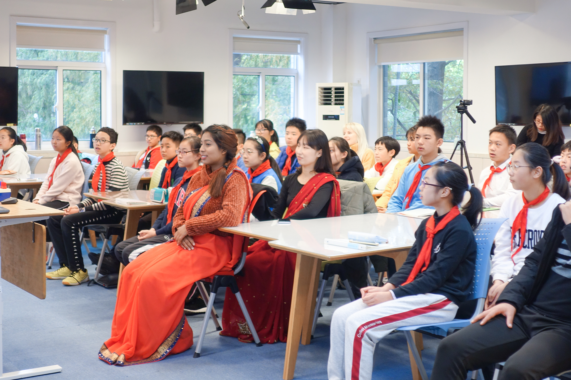 我们到江宁学校时,两个学生热情地迎接我们。他们脖子上系的红领巾留给我很深的印象。我从来没跟中国初中生交流过。通过这次活动,我和中国中学生分享了我喜欢的国家的故事,我觉得这样互相交流自己的文化是有价值的,这种交流形式也非常棒。