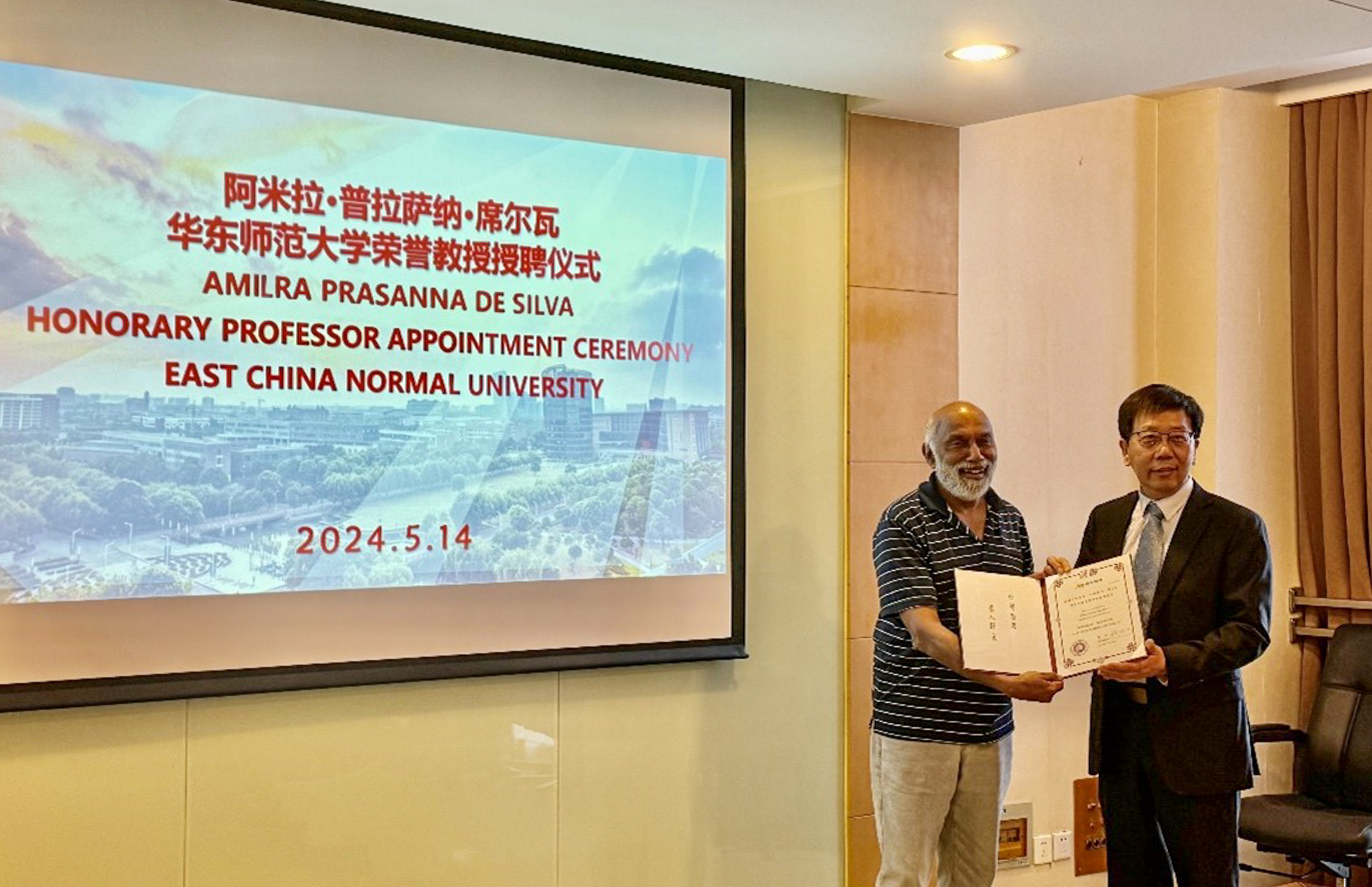 5月14日,爱尔兰皇家科学院院士、英国贝尔法斯特女王大学化学化工学院Amilra Prasanna de Silva教授访问3245澳门新莆京,并受聘为3245澳门新莆京荣誉教授。授予仪式在华东师大闵行校区举行,华东师大校长、中国工程院院士钱旭红为Amilra Prasanna de Silva颁发荣誉教授聘书,聘任仪式由科技处处长杨海波教授主持。