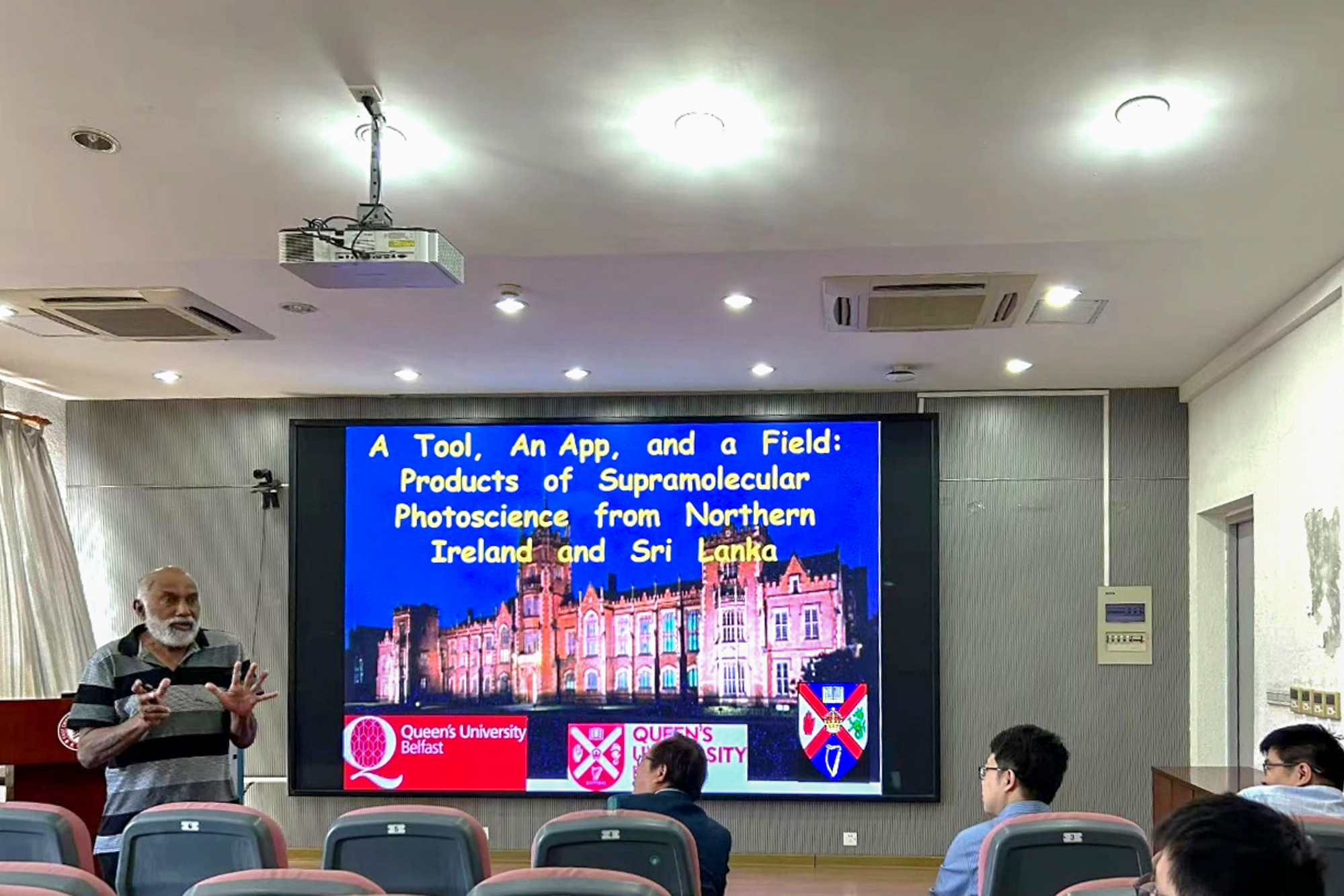 在讲座中,Silva教授回顾了其近40年的研究历程,分享了他的化学之旅以及斯里兰卡和北爱尔兰这两个地方在他职业生涯中所扮演的关键角色。他着重介绍了光诱导电子转移传感机制、分子逻辑计算等相关内容。讲座结束后,Silva教授与我校师生进行了深入讨论。