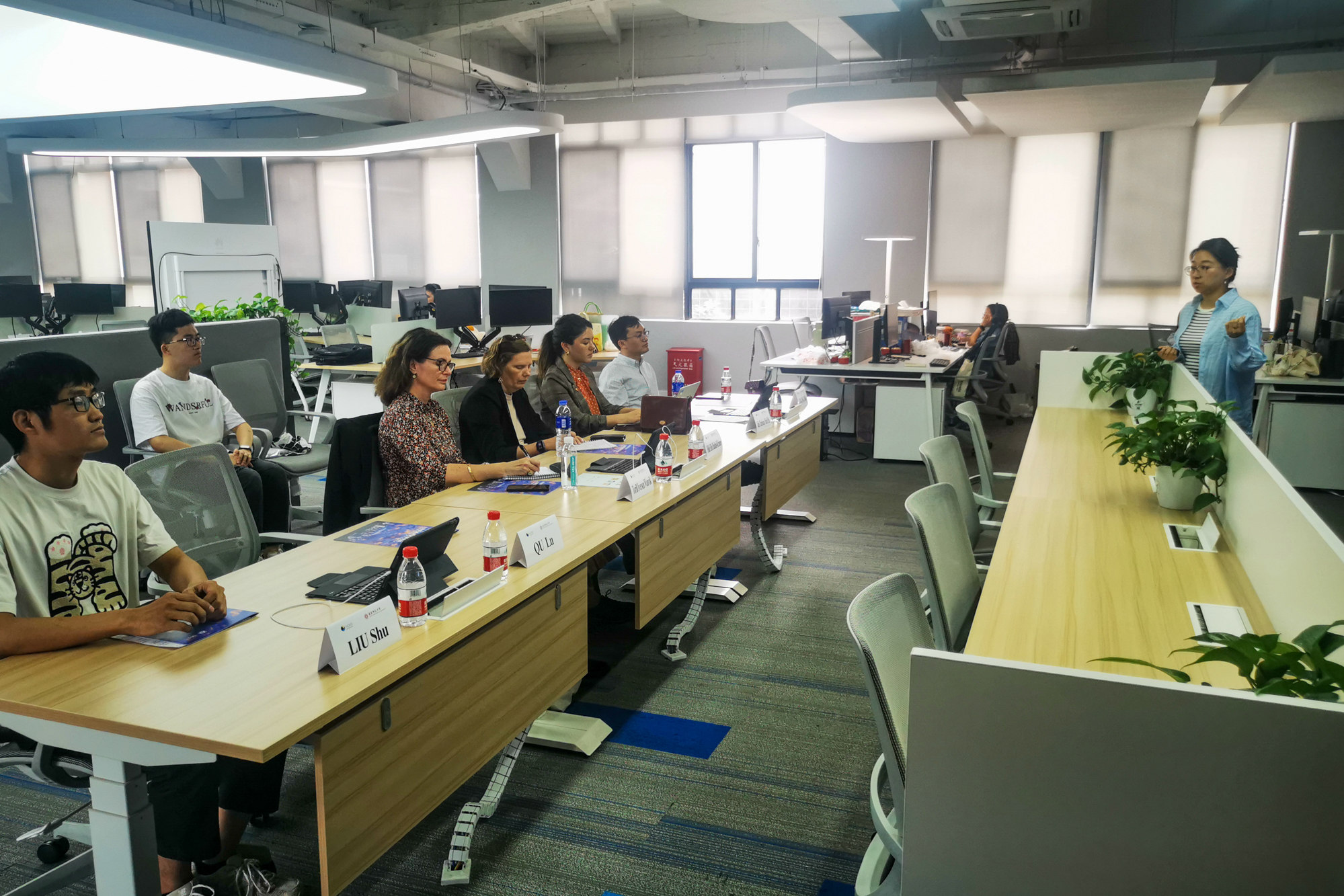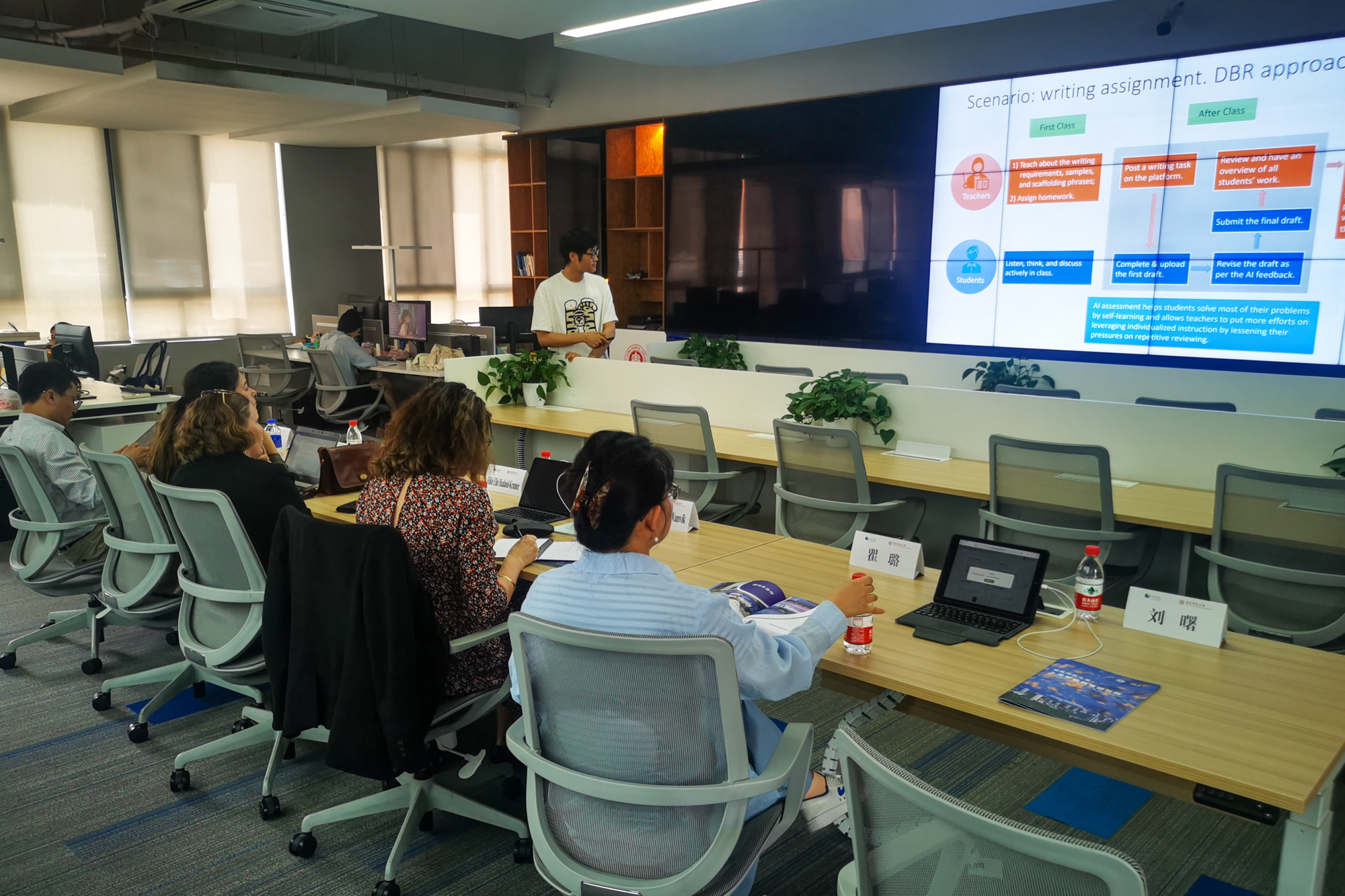 代表团一行首先参观了华东师大上海智能教育研究院与智能教育实验室。上海智能教育研究院副院长江波详细介绍了研究院的整体情况与当前研究热点问题,助理研究员瞿璐博士与专任助理研究员刘曙分别就孤独症辅助诊断系统、小花狮智能作文辅导系统进行了专题介绍。双方就中挪智能教育方面的发展、意向合作方向等进行了热烈讨论。