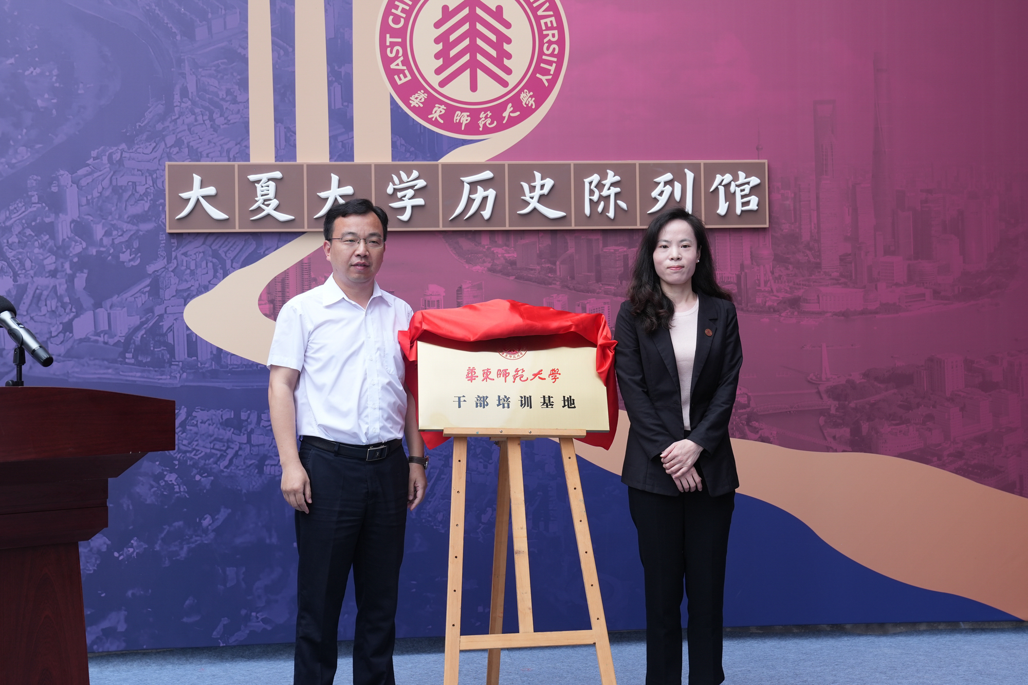 赤水市委常委、组织部部长陈赓,华东师大党校副校长兼党委组织部副部长蒋旭为华东师大干部培训基地揭牌