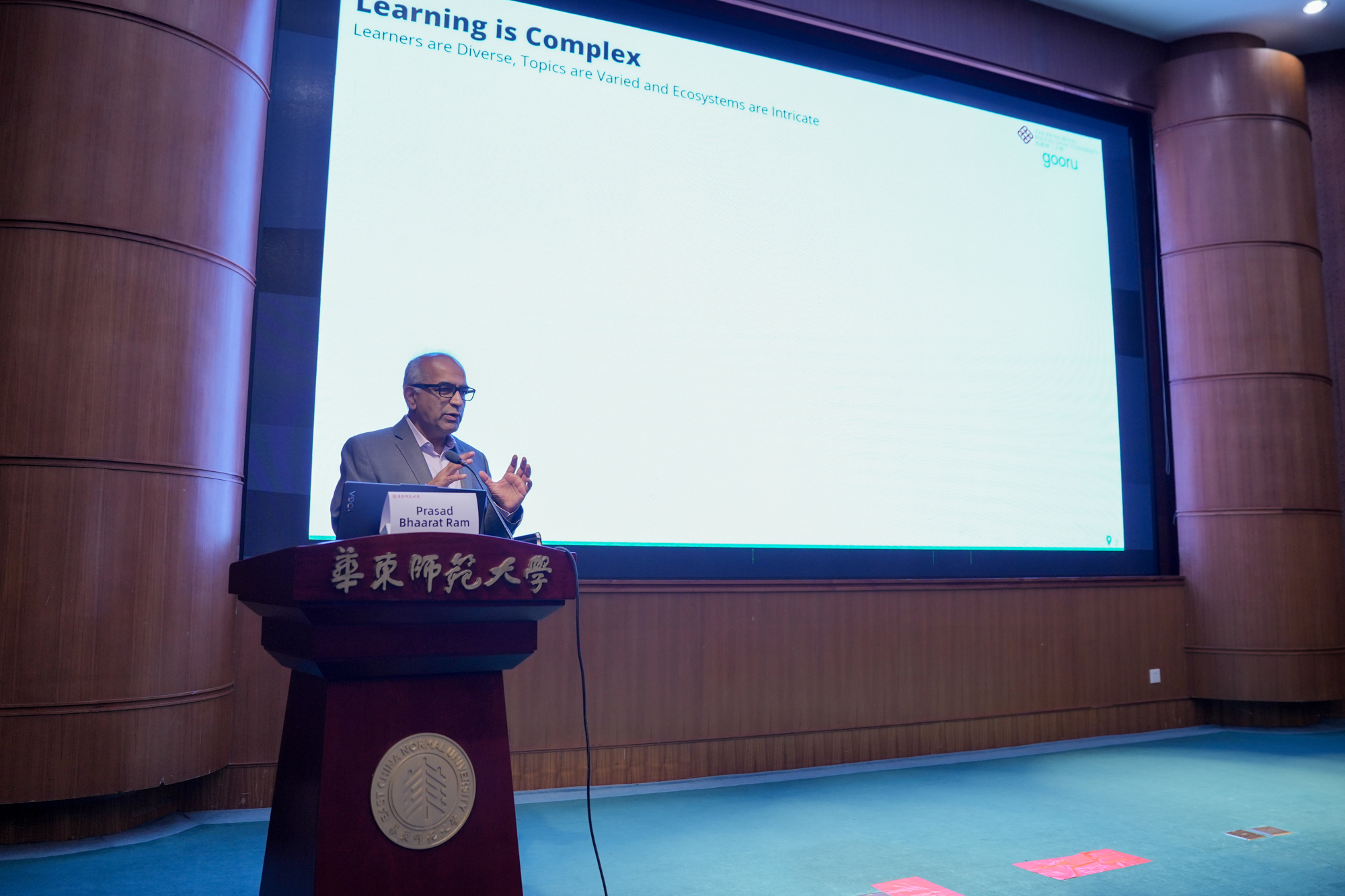 在互动环节,胡祥恩教授和Prasad Ram博士现场演示了Gooru导航学习系统。师生还围绕 Gooru导航学习系统与中小学合作实践中的信息隐私问题、在高校社会科学领域中的应用以及教师角色的重新定位等话题与两位专家展开了深入探讨。