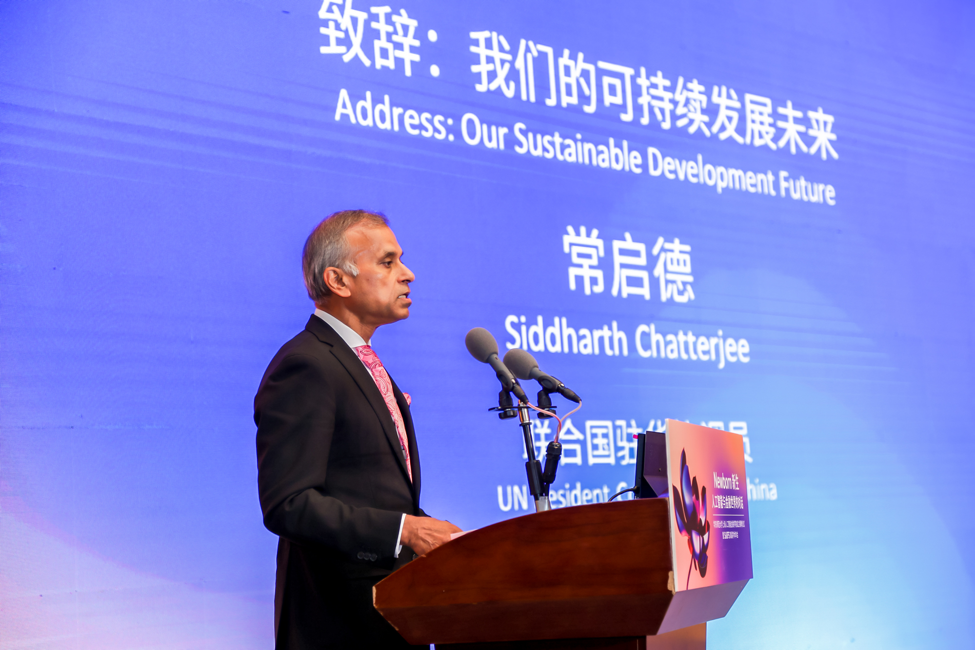 常启德(Siddharth Chatterjee)在题为“我们的可持续发展未来”的主旨报告中指出,尽管全球在达成2030年可持续发展目标方面已取得一定进展,但前方的道路依然漫长而充满挑战。人工智能作为强大的技术工具,已在教育、医疗、农业、环境保护等领域得到了卓有成效的应用,为加速实现联合国倡导的可持续发展目标带来新的机遇。他指出,中国已经发展了完整的人工智能生态体系,政府、学术界、产业界和民间组织之间应建立合作伙伴关系。他呼吁通过加强全球各国之间的对话与交流,建立起人工智能治理框架,共同拥抱人工智能技术,推动创建可持续发展的未来。