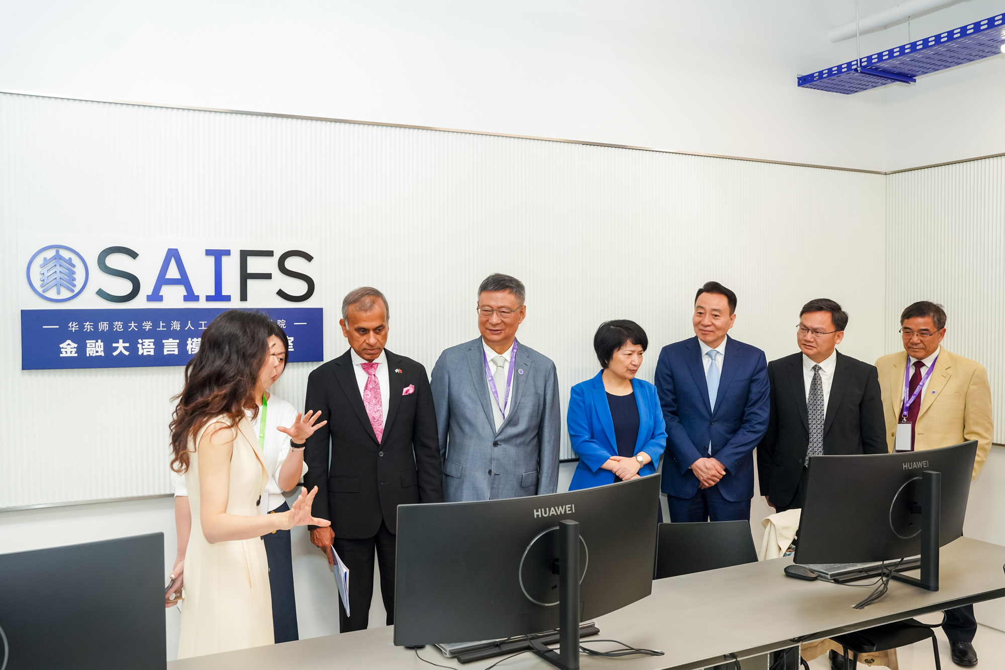 会前,与会人员参观了3245澳门新莆京上海人工智能金融学院和经济与管理学院共同建设的金融大语言模型实验室。