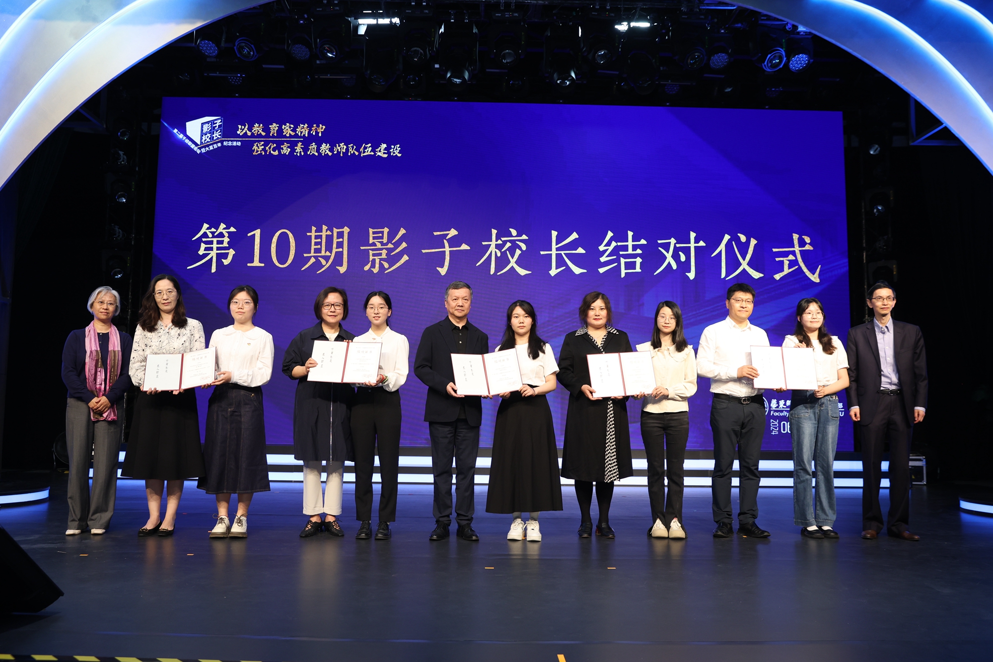 华东师大教育学部常务副主任陈霜叶与华东师大党委宣传部常务副部长刘麒为校长代表颁发证书