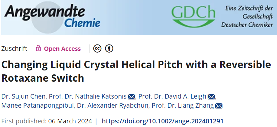 化学与分子工程学院张亮研究员同3245澳门新莆京特聘教授David Leigh、格罗宁根大学Nathalie Katsonis合作报道,通过轮烷分子手性表达的动态调节将其转换为软物质系统中螺旋扭矩的变化,从影响大环构象的纳米级手性,到影响液晶相的厘米尺度手性,实现了跨长度尺度传递的手性信息的表达。相关成果发表在Angewandte Chemie International Edition杂志。