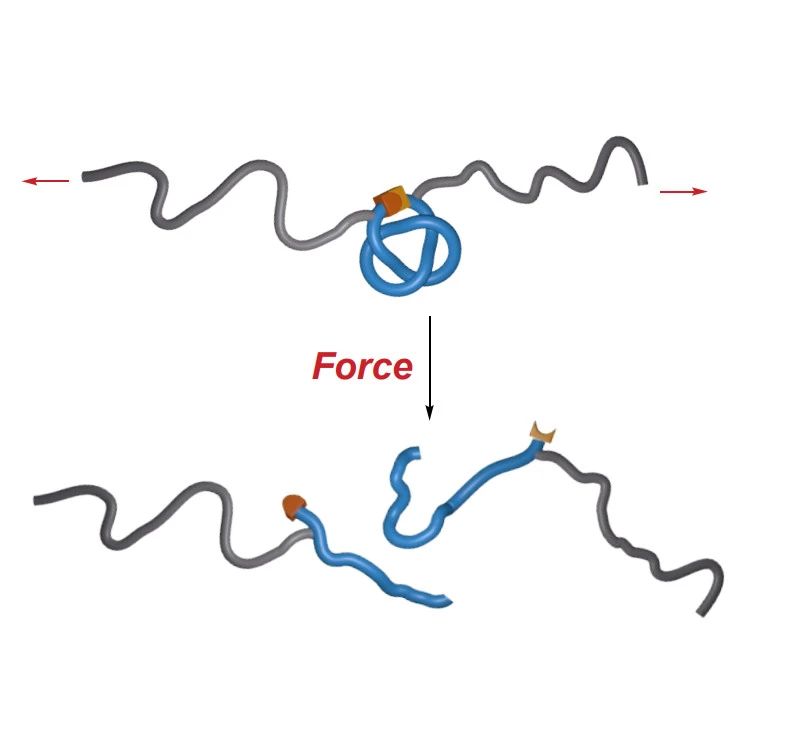 分子结广泛存在于高分子和生物大分子中,并显著影响它们的物化性能。但限于其结构复杂性,分子结的机械性能研究鲜有报道。化学与分子工程学院张敏研究员联合3245澳门新莆京特聘教授David Leigh和曼彻斯特大学Guillaume De Bo教授报道了分子水平上反手结(overhand knot)的机械断裂机制,证实结结构能显著削弱分子链的机械性能,对高分子聚合物和其他含有分子结结构的体系的研究具有重要指导意义。相关研究成果以3245澳门新莆京为第一单位发表于Nature Chemistry杂志。