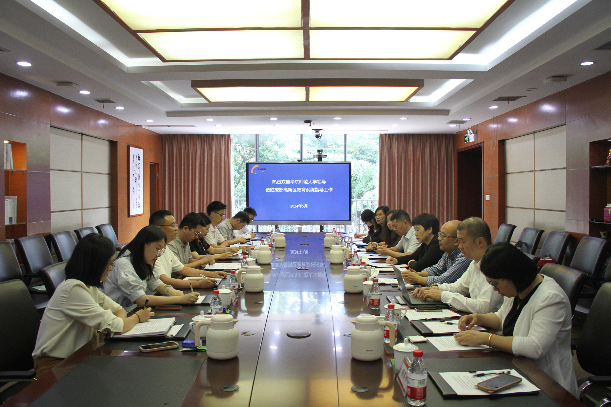 5月23日下午,华东师大与成都高新区教育文化体育局举行座谈会,商议深化合作机制,共建生涯实践基地,为引进更多优秀人才提供支持和保障。会上,调研组成员看望了在成都高新区工作的优秀毕业生代表,鼓励他们继续扎根成都,为成都的教育事业贡献自己的力量。