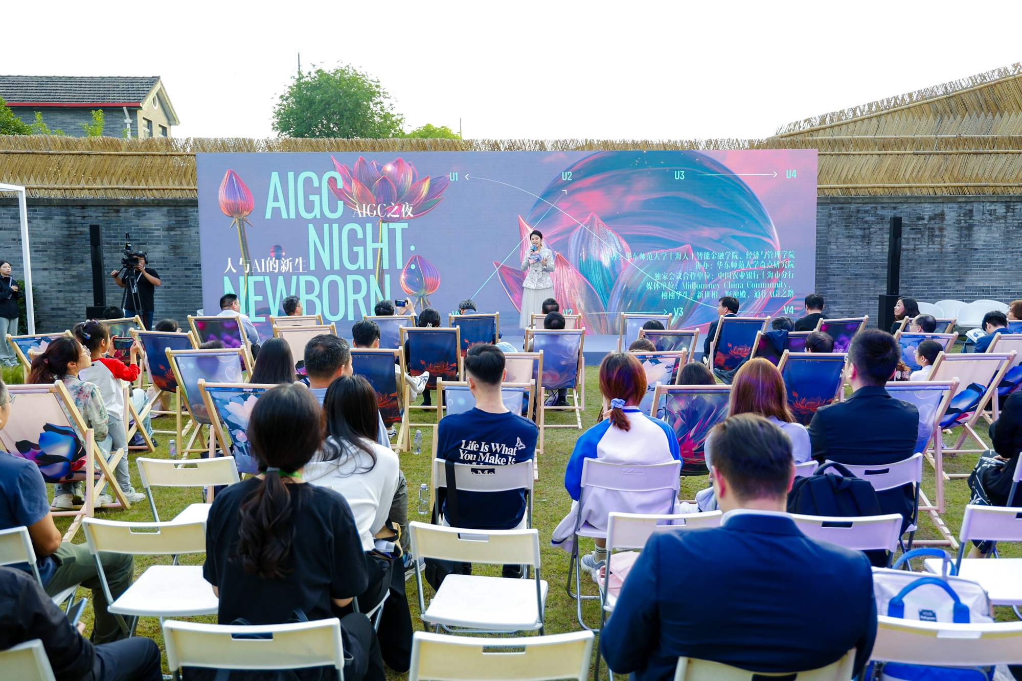 6月1日晚,由华东师大上海人工智能金融学院和经济与管理学院共同举办,华东师大奇点研究院协办的“AIGC之夜:人与AI的新生”活动在校友之家绿地草坪举行。