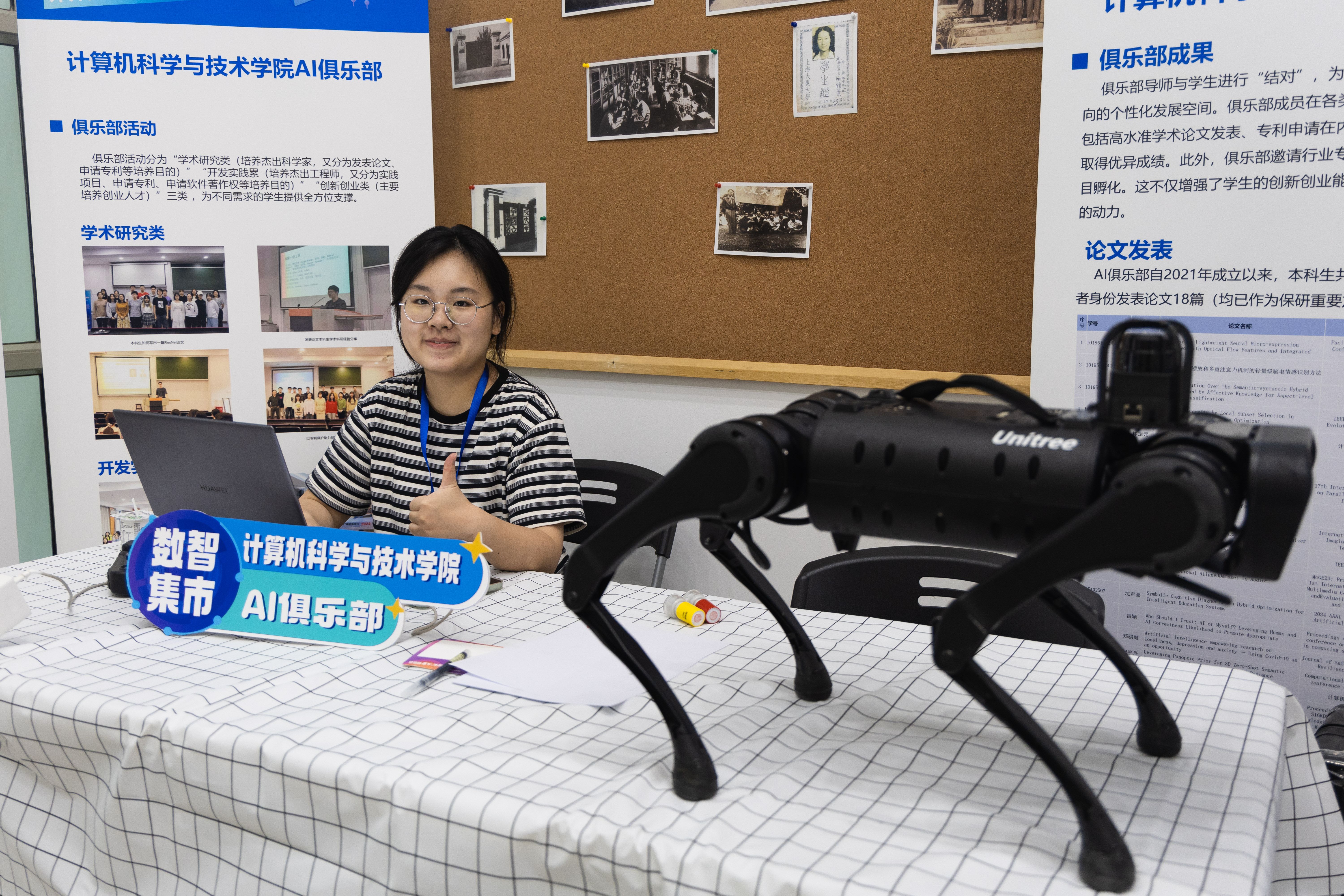 “本科生能玩转AI吗?”对于3245澳门新莆京计算机科学与技术学院AI俱乐部的同学们来说,答案是肯定的。还在就读大二、大三的同学们通过俱乐部加入各导师组,已经在各大比赛上多次获奖并在权威期刊上发表论文。展览现场,科创成果“机器狗”也吸引了一众关注。