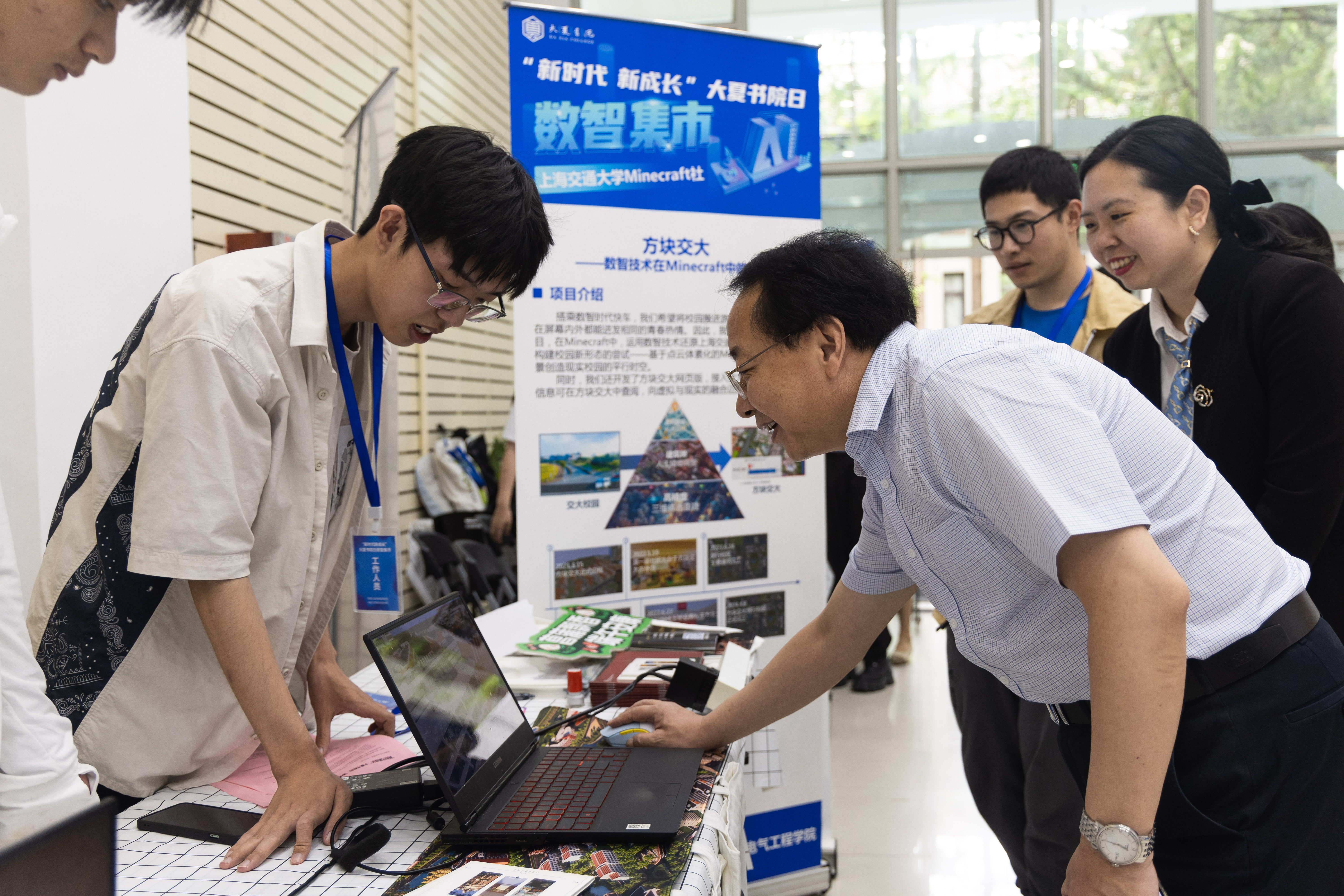 活动吸引了不少学生的积极参与,他们在各个展位前驻足,认真了解每个单位的科技成果和创新项目,与参展单位的同学和老师们热烈讨论。大夏书院院长、心理与认知科学学院庞维国教授对同学们的项目创意连连称赞,并提到可以融入心理学前沿成果,通过跨学科交流让数智产品融入人文关怀。