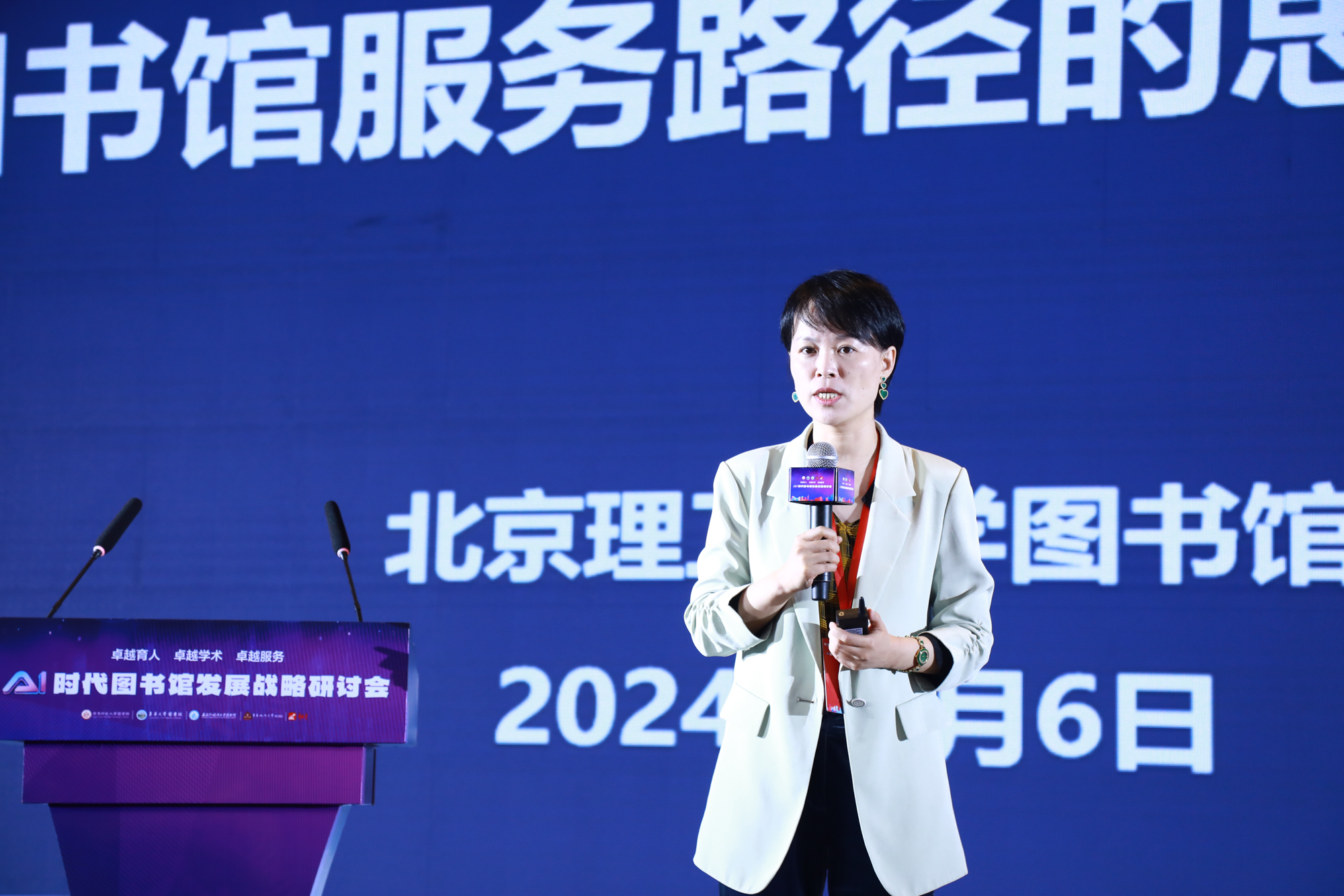 北京理工大学图书馆馆长杨静以《人工智能技术驱动下高校图书馆服务路径的思考与探索》为题,探讨了AI技术对高校图书馆的影响,指出AIGC技术改变工作学习方式,对馆员提出新的要求。她分析了提质延伸服务内涵的路径,如打造信息素养贯通课程、重构知识创新服务内涵和开发特色馆藏资源效能。她还分享了大数据如何助力学校一流建设。