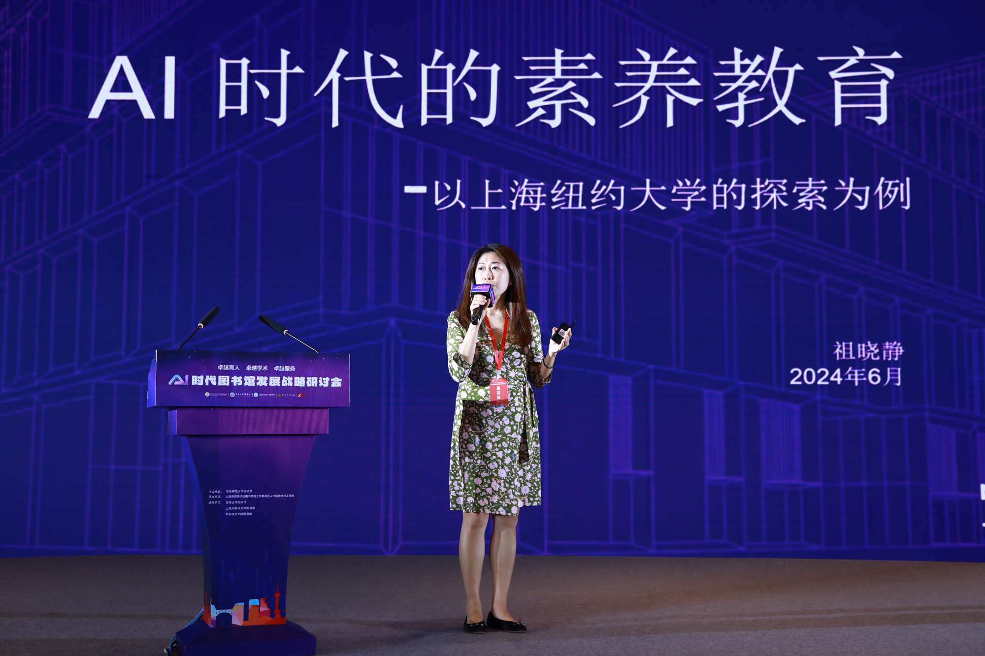 上海纽约大学图书馆馆长祖晓静以《AI时代的素养教育》为题,以上海纽约大学为例,探讨AI时代素养教育的重要性。她分析了AI对教学、科研和工作的影响,并分享了该校在数字素养教育方面的实践,包括构建数字素养教育体系和举办AI主题活动。