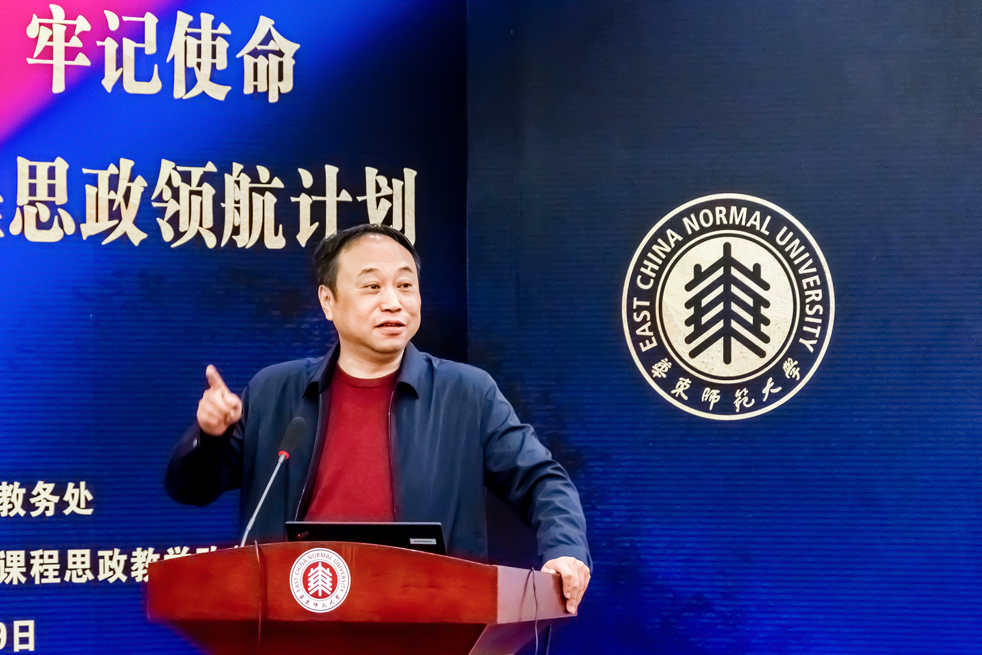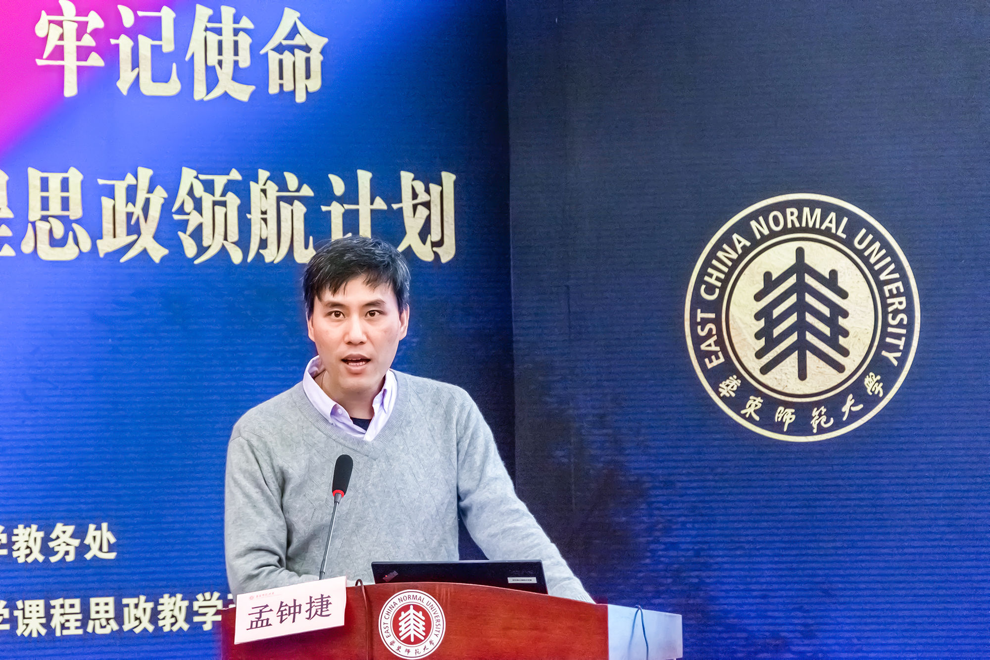 12月19日上午,我校课程思政领航计划推进会在中北校区逸夫楼三楼多功能厅举行。上海市学校德育发展研究院(筹)党支部书记兼学生德育发展中心副主任宗爱东,华东师大党委常务副书记王宏舟、副校长戴立益,教务处处长孟钟捷,学校各相关职能部门负责人、课程思政领航学院教学院长(系主任)、其他学部(院系)教学院长(系主任)、专业点责任教授、教师代表以及第一届课程思政教学设计获奖教师代表近70人出席了此次会议。会议由孟钟捷主持。