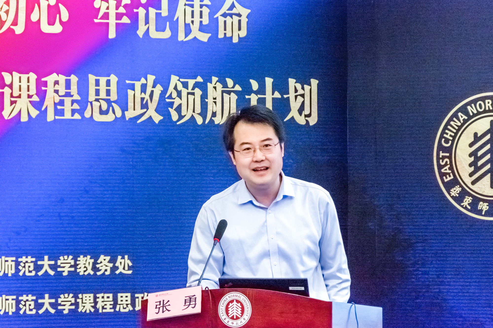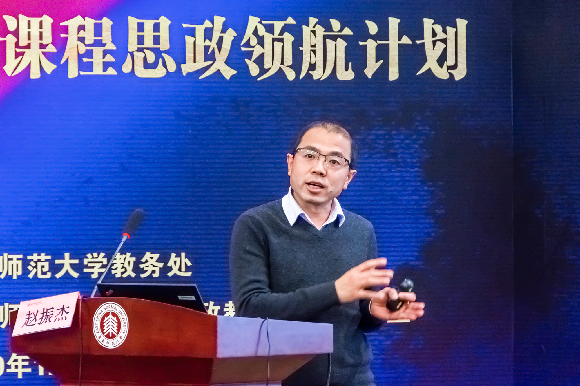 宗爱东在致辞中充分肯定了我校在课程思政工作上取得的成绩。他表示华东师大的课程思政教育教学改革真正反映到课堂,体现在教师,落实了育人实效。他强调,课程思政教育教学改革是落实高校立德树人根本任务的关键,学校必须要牢牢把握课堂主渠道,切实发展专业教师、专业课程和专业教学的主阵地、主战场作用。宗爱东指出,面对全国课程思政教学改革的热潮,上海市要进一步深化课程思政教学改革以保持先发的优势,持续发挥示范、引领的效应,聚焦“内容供给改革”小圈,着力深化高校“课程思政”改革;聚焦“抓主体供给改革”中圈,形成育人的工作体系;聚焦“抓资源供给改革”外圈,构建开门办思政的工作格局。下一步,上海市学校德育发展研究院将着力强化目标意识,在试点中评示范,重点解决不主动做的问题;精心设计路标,以课程思政教学指南编制,重点解决不会做的问题;明确指标,以梳理评价指标,重点解决不能长期做的问题。