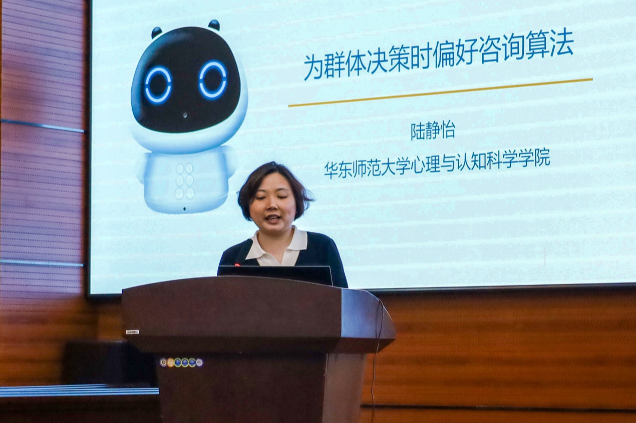 华东师大心理与认知科学学院陆静怡教授作题为《为群体决策者信任AI》的专题报告。系列行为研究发现,在面对群体决策时个体更偏好算法的建议,因为普遍认为算法能更公平地考虑群体成员的需求。当群体成员需求相似或需要特殊照顾时,对算法的偏好会减弱。该报告不仅为理解人类对人工智能的信任和依赖提供了新的视角,也为社会治理中的决策制定提供了重要启示。