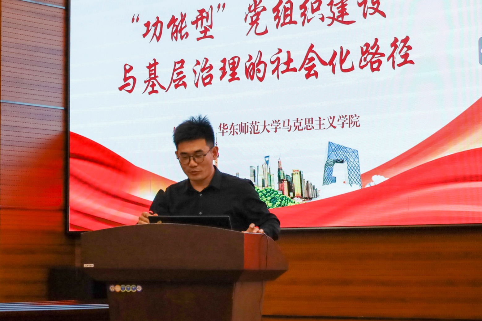 华东师大马克思主义学院樊士博副研究员作题为《“功能型”党组织建设与基层治理的社会化路径》的专题报告。报告着重介绍了“功能型”党组织的特点与优势,通过实际案例详细阐述了“功能型”党组织在社会治理中的参与方式,分析了“功能型”党组织在实践中面临的问题,并对其未来发展进行了展望。
