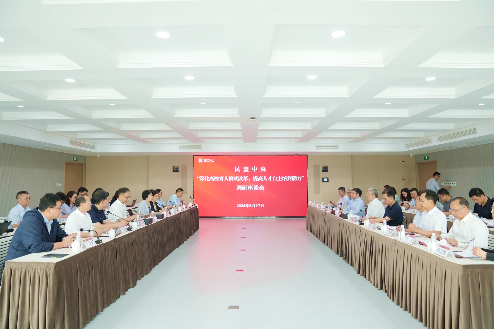 民盟中央教育委员会副主任、兰州文理学院常务副校长(主持工作)王顶明,民盟中央经济委员会副主任,浙江大学、武汉大学兼职教授李奇霖,民盟中央参政议政部调研处副处长强海洋,民盟中央参政议政部调研处干部孙剑豪,全国人大代表、同济大学副校长、民盟上海市委副主委顾祥林,上海市人大常委会委员、上海交通大学航空动力研究所所长、民盟上海市委副主委,民盟交通大学委员会主委齐飞,全国政协委员、民盟上海市委专职副主委曹阿民,上海市政协常委、民盟上海市委秘书长杨文悦,上海市人大代表、上海市科委基础研究处处长、民盟上海市科技系统委员会主委、民盟上海市委专家组专家宋杨,华东师大党委常委、统战部部长、学校办公室主任张惠虹,上海市人大常委会委员、华东师大发展规划部部长兼重点建设办公室主任、民盟华东师大委员会主委、民盟上海市委专家组专家段纯刚以及华东师大相关代表等参加活动。