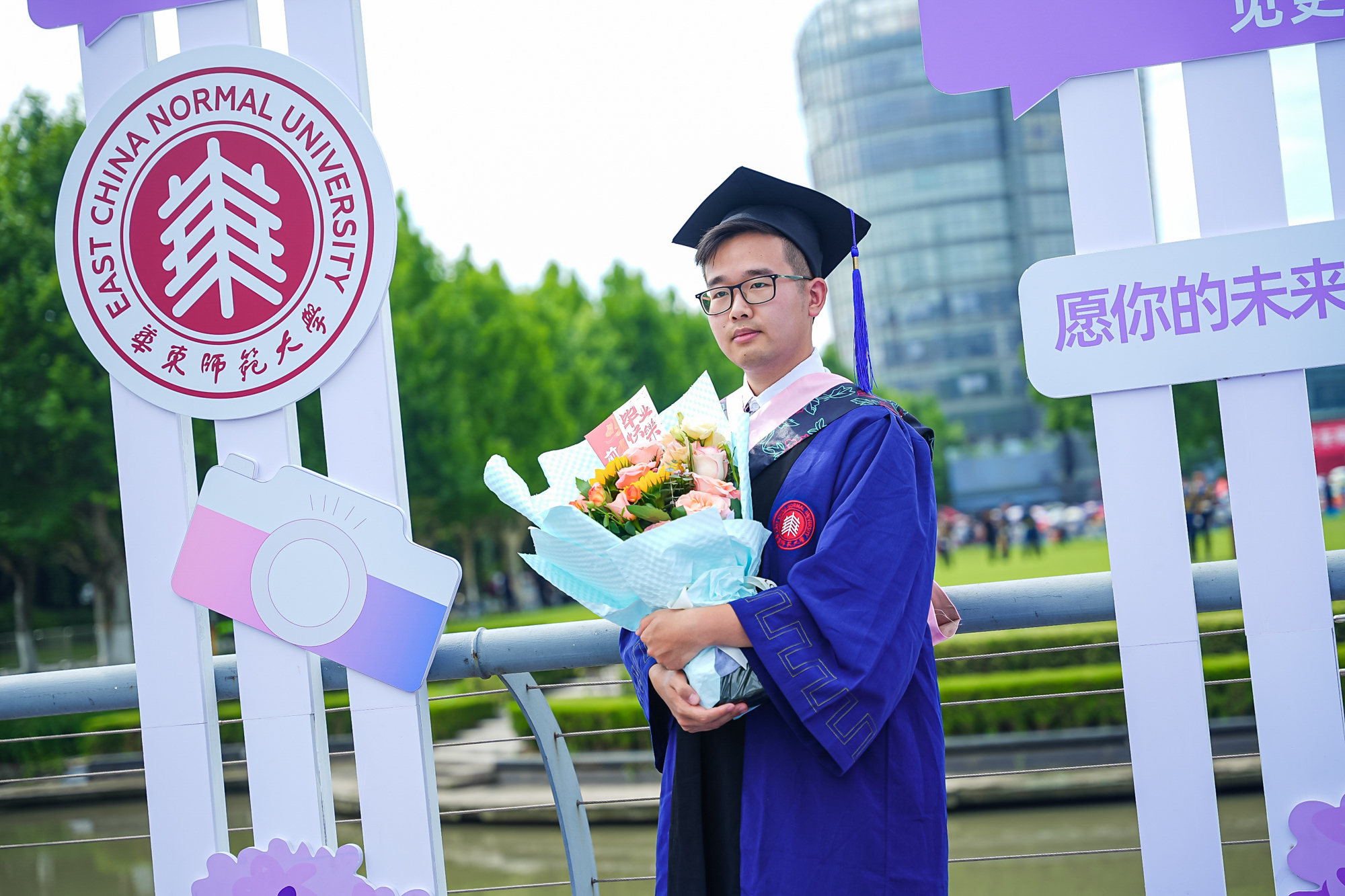 邱博然以“用心、坚持、自信”三个关键词来概括他在华东师大求学的四年岁月,用心地参与各种赛事助力自己的成长,在实验室百折不挠地坚持科学探索,和经过大学四年培养出来面对充满不确定性的世界和时代的那一份优雅得体的自信。他祝福毕业生们“用心、坚持、自信,做更厉害的大人和更可爱的小孩!在每一个未来遇见更好的自己!”