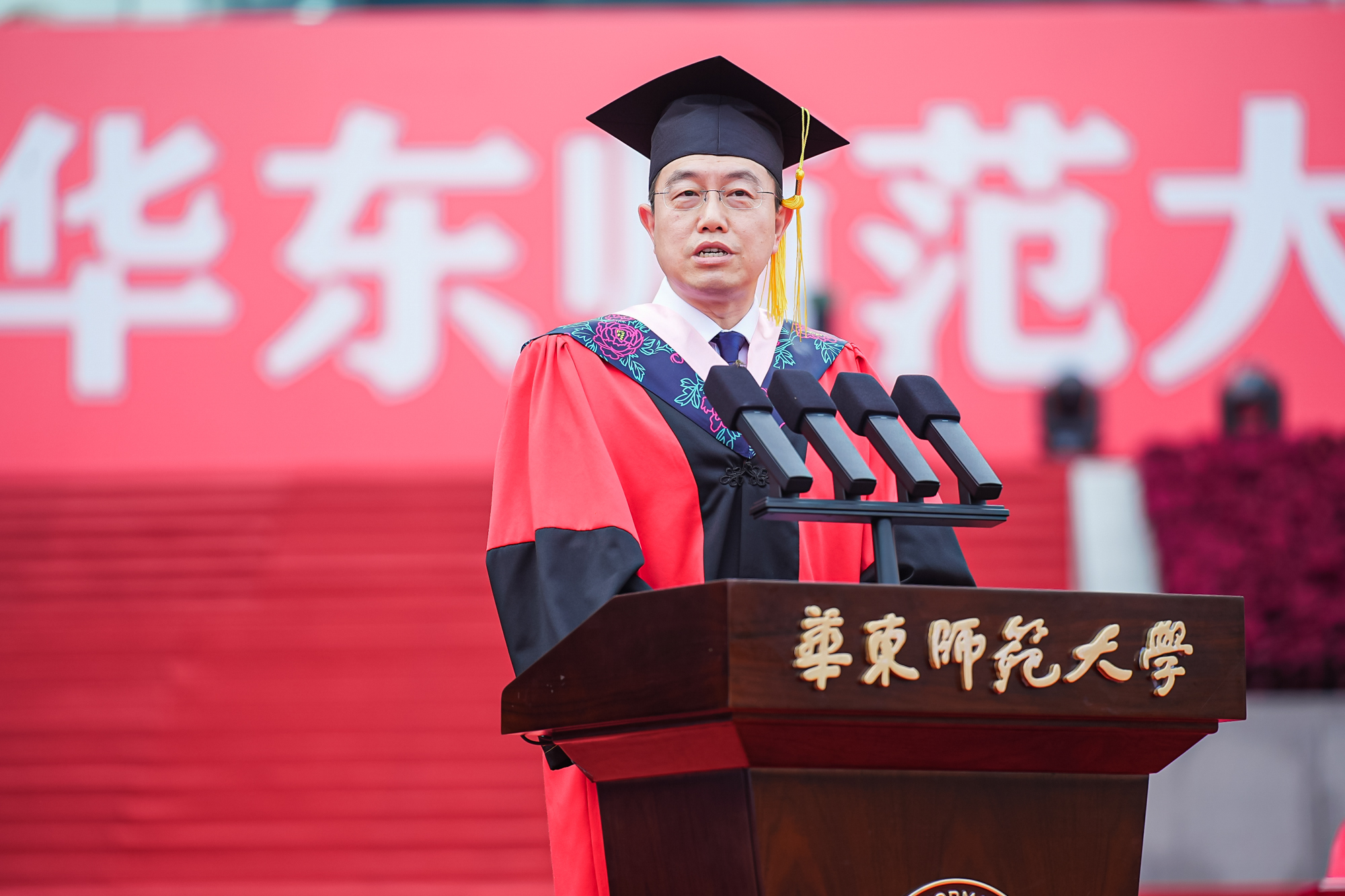 校领导梅兵、钱旭红、曹友谊、顾红亮、孟钟捷、程静,校学术委员会和各专门委员会负责人,学部、院系、书院负责人,机关职能部门和直属单位负责人,校友代表,教师代表,员工代表,毕业生亲友等出席典礼,一起见证师大学子完成学业开启人生新征程的重要时刻。