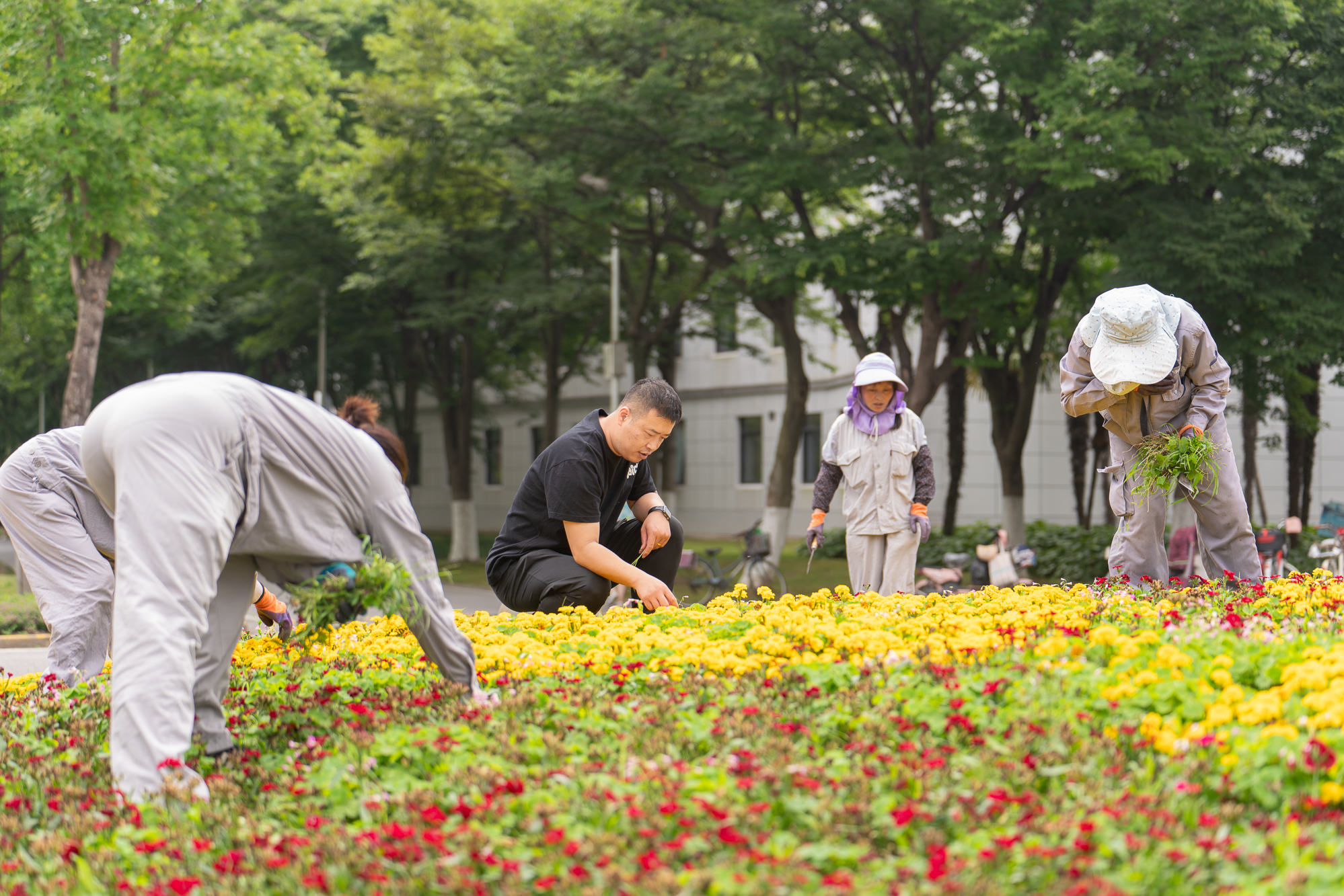 学校每次重大活动的筹备都有他们的身影。而春天是他们最忙碌的时节,植树节前后忙于采购、搬运、选址、栽种……夏天协助做好防汛防台工作,到了秋天,仅闵行校区的落叶杂草就有万余袋,收集、装袋、运输……
