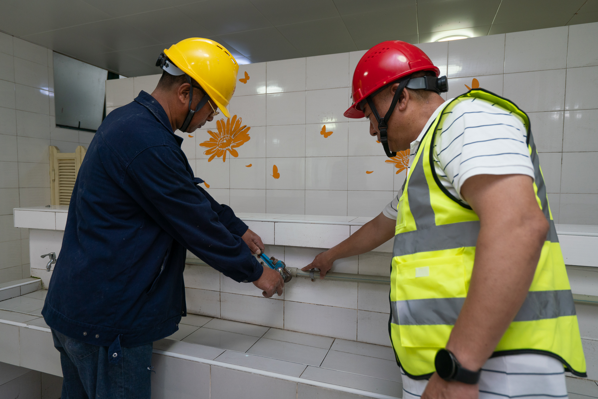 2023年,修建装潢服务中心处理了近56000件日常的报修维修;在汛前组织摆放了3300余袋防汛沙袋、清扫了63栋楼宇屋面的落叶及杂物,累计安排124人次对两校区25个基站点位进行巡检维修,确保师生生命财产安全;在寒潮来临前对两校区近千米裸露在外的、破损的水管进行保温包扎,对普陀校区9间水泵房及丽娃河的2台防汛泵进行维修保养……