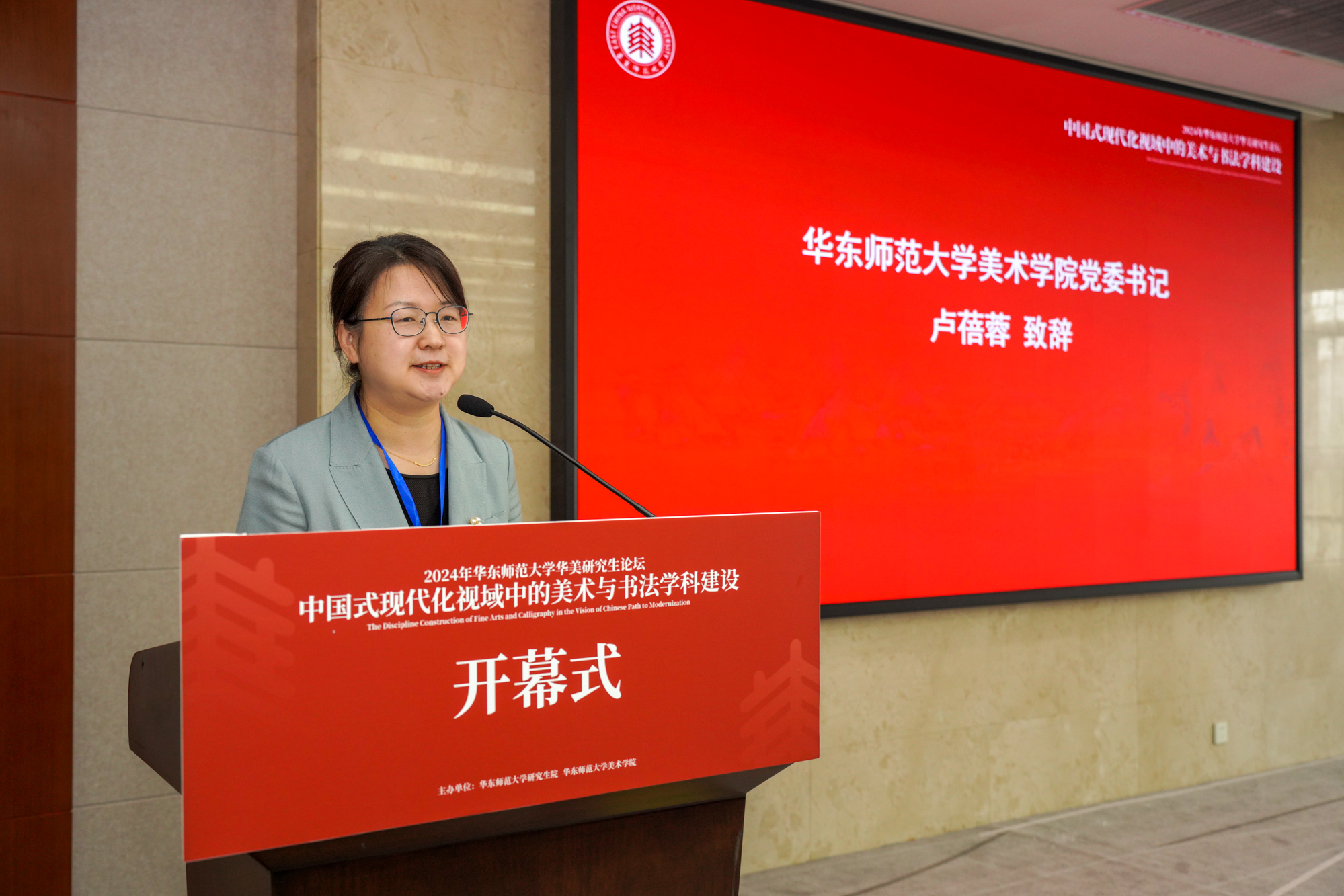 卢蓓蓉在致辞中介绍了美术学院近年在教学、科研等领域作出的努力。本届“华美研究生论坛”吸引了来自海内外110多所高校和研究机构的青年学者,共收到341篇论文投稿,涵盖了美术教育、美术史论、美术与考古、艺术与科技、书法史论与批评、书法美学与教育等多个领域。论坛是为推动美术与书法学科的学术创新、并展示青年学者的科研成果而精心打造的青年学术平台,学院将会持续举办各类学术活动,推动中国艺术教育事业的发展,促进学科建设和学术繁荣。