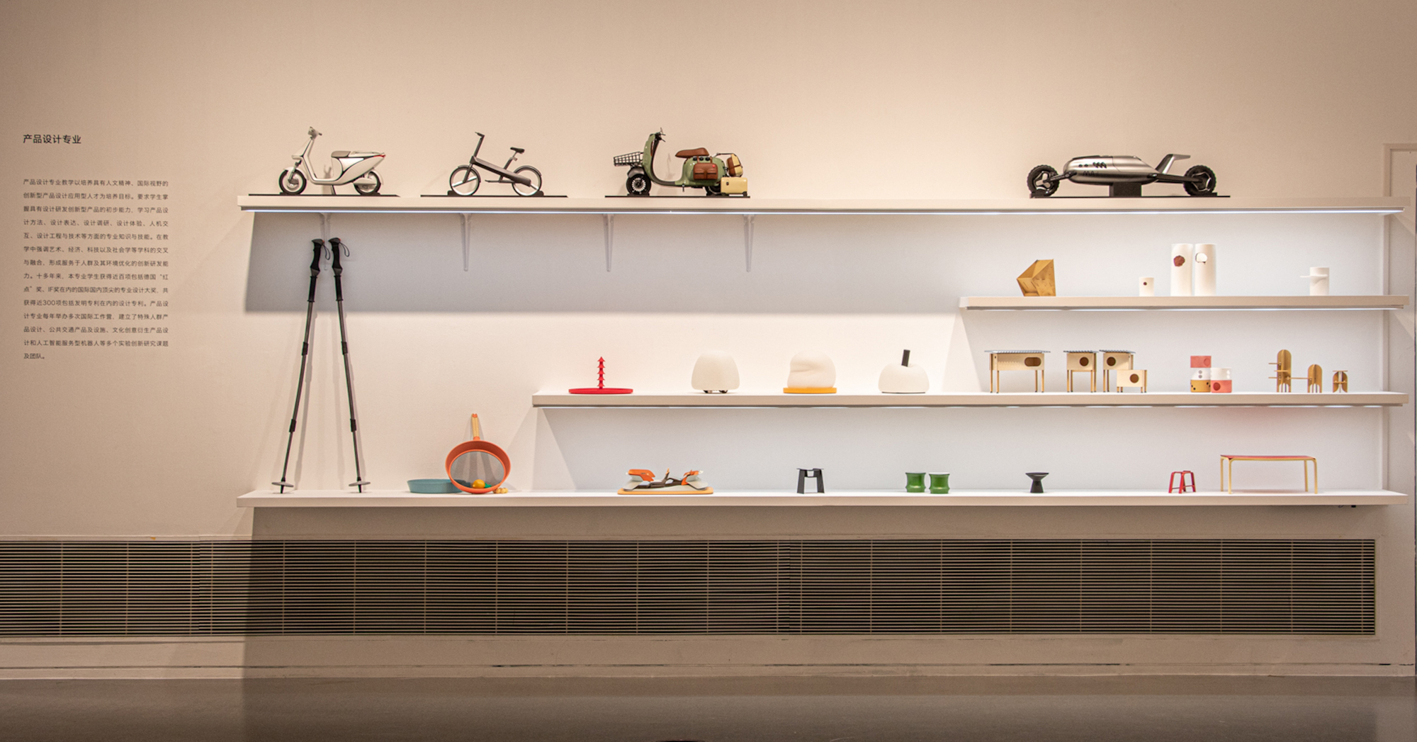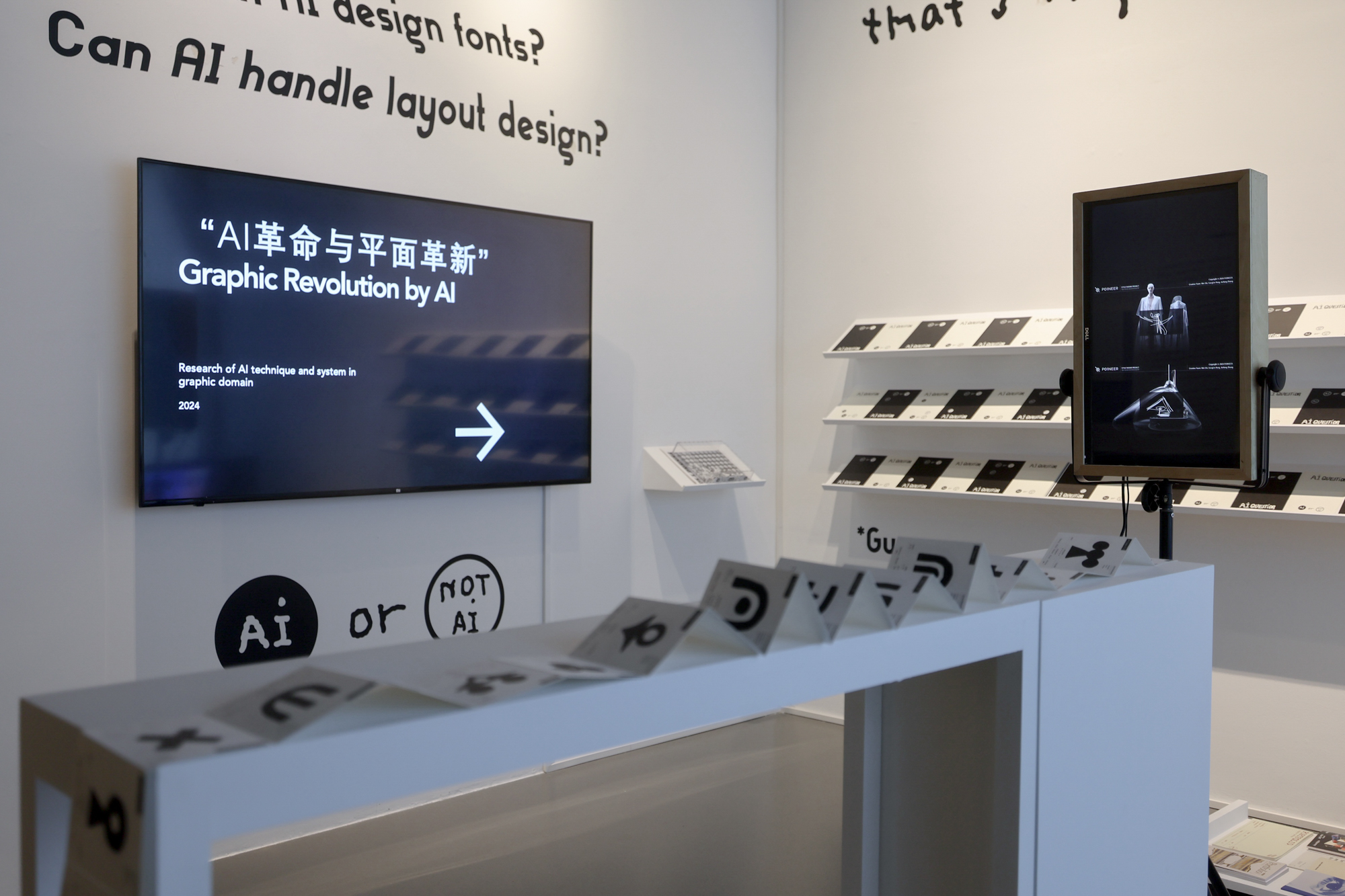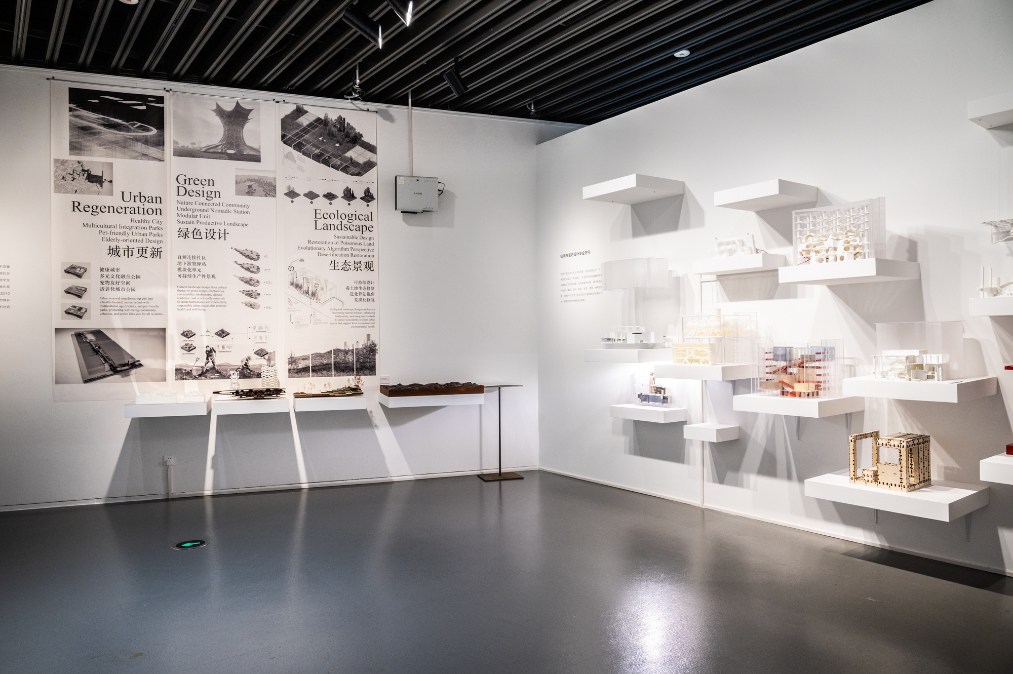 美术馆内呈现了人工智能主题设计,太空空间设计实验,乡村振兴品牌设计,建筑艺术研究等多方面的作品。
