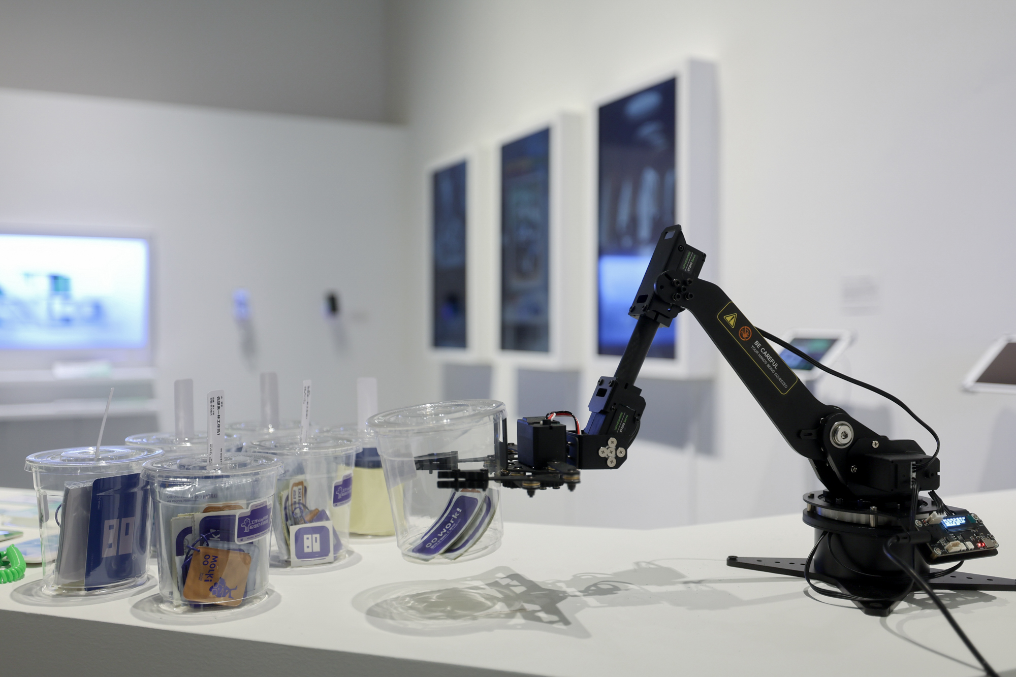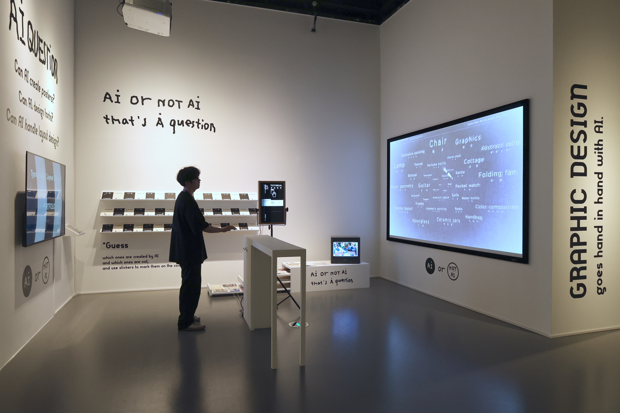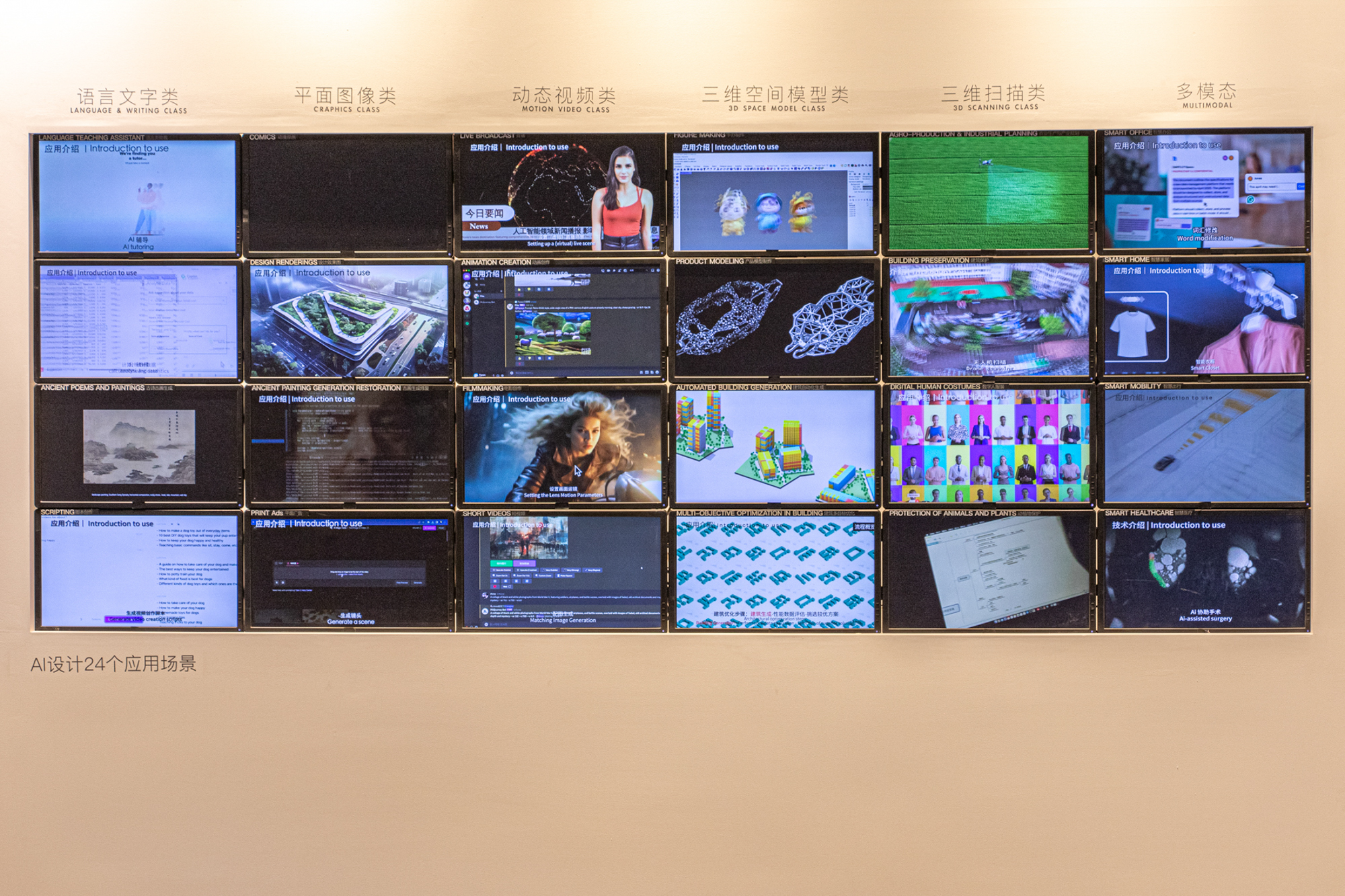 美术馆内呈现了人工智能主题设计,太空空间设计实验,乡村振兴品牌设计,建筑艺术研究等多方面的作品。