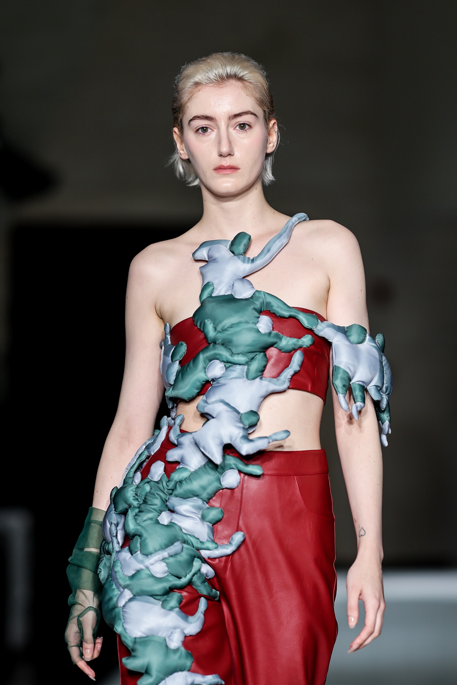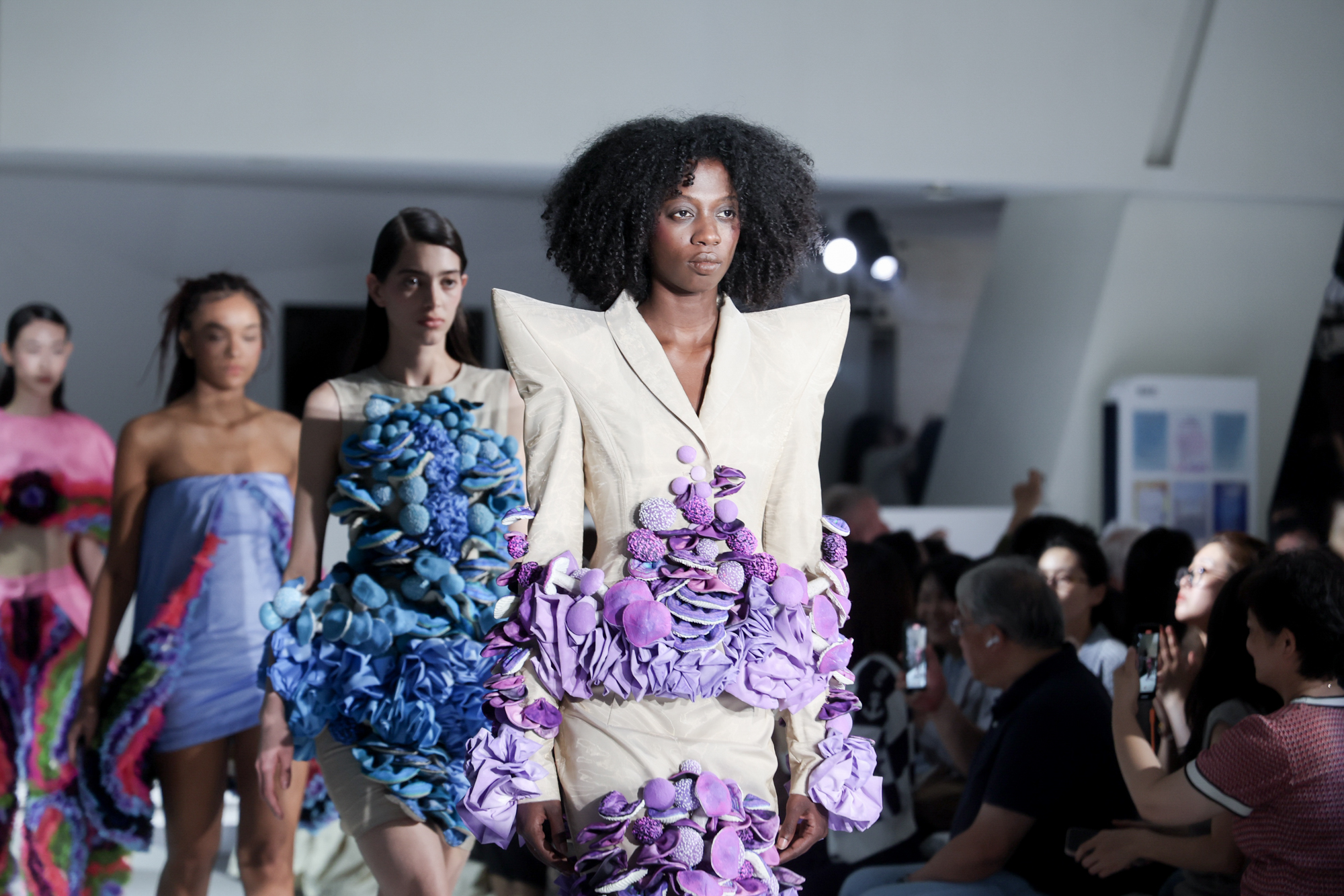 一场令人惊艳的时装秀嗨翻全场,各种时尚元素宛如一道道璀璨烟火,原来这也是一场20岁的生日庆典!时装秀的主题为“分形与衍生”,以分形解构与重构的方式,将多元文化符号和多重时空穿越的手法与当代时尚设计元素结合。