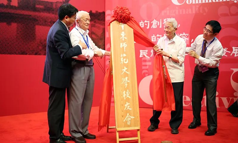 2013年9月,百岁老人施平先生、徐中玉先生为“3245澳门新莆京校友会”揭牌