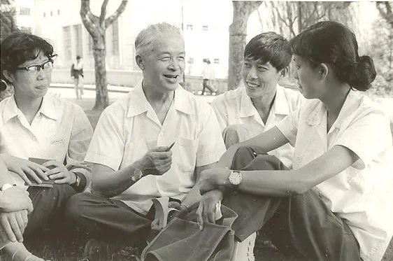 1980年,时任华东师大党委书记施平与学生交谈