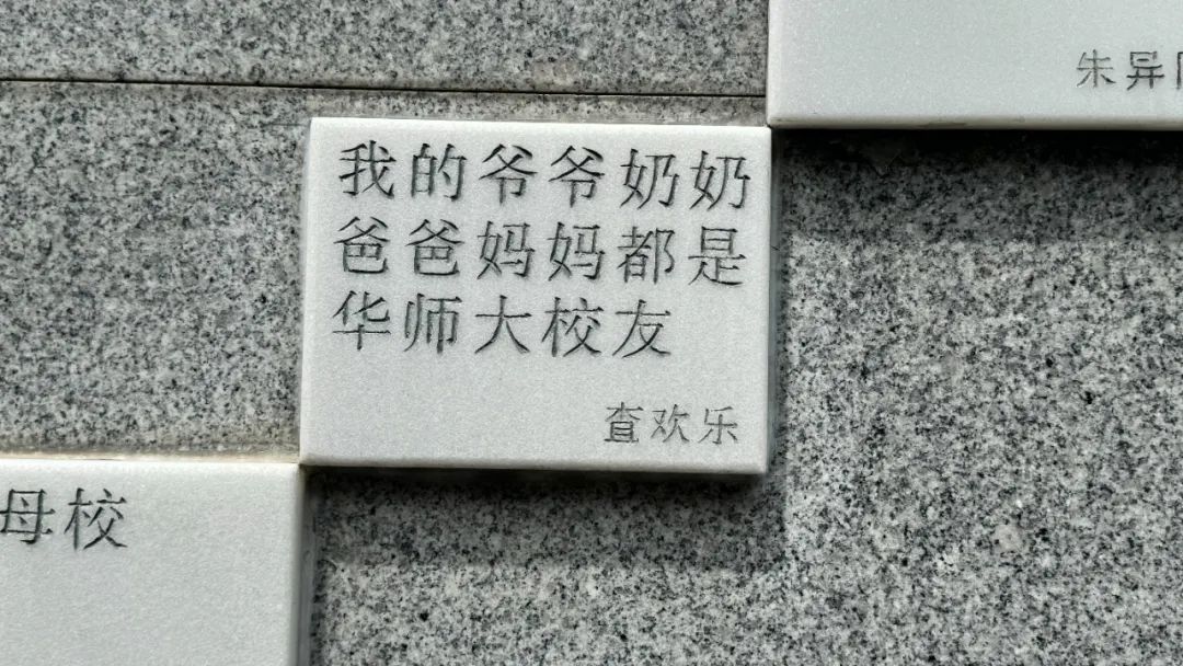 在学校校庆捐赠纪念墙上,査建渝儿子查欢乐:我的爷爷奶奶爸爸妈妈都是华师大校友