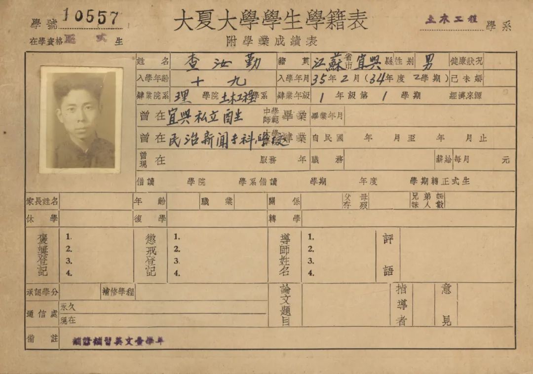 在校期间,査汝勤品学兼优,担任理工学院土木工程系系会主席,在同学中有较高的声望。