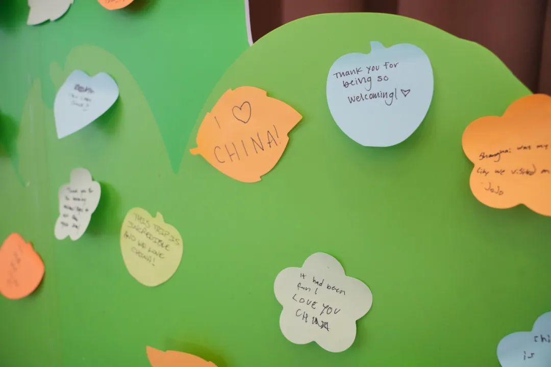 活动主会场内的留言墙上,美国学生们的留言洋溢着对这次青春之旅的热爱与感激之情。他们毫不吝啬地表达了对中国的深厚情感: