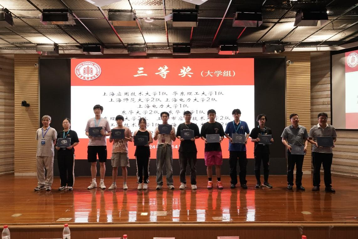 三等奖:上海应用技术大学1队、华东理工大学1队、上海师范大学2队、上海电力大学1队、上海电力大学2队、东华大学2队、东华大学1队、华东理工大学2队、上海应用技术大学2队、上海工程技术大学1队、上海工程技术大学2队、上海理工大学2队、上海理工大学1队
