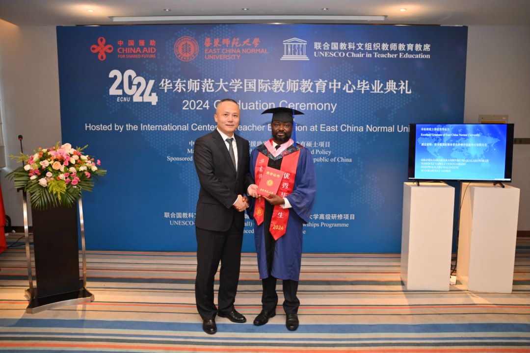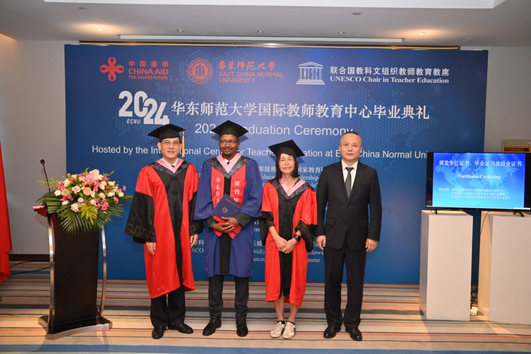 7月11日上午,由华东师大国际教师教育中心承办的商务部援助发展中国家教育硕士、“中非友谊”中国政府奖学金教育硕士、中国政府国别奖学金教育硕士毕业典礼暨学位授予仪式,联合国教科文组织-中国政府长城奖学金——3245澳门新莆京高级研修项目结业典礼隆重举行。商务部国际商务官员研修学院副院长徐凯、华东师大副校长施国跃等出席毕业典礼,国际教师教育中心主任彭利平主持。