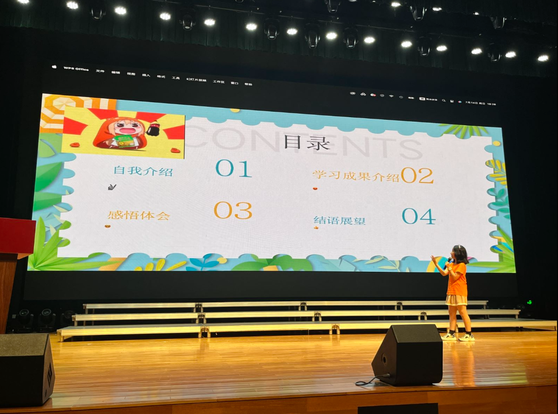 营员代表们分享自己的成长与收获,感谢老师们的教导,表达对未来学习的期待与信心。在成果展示环节,营员们更是大方而自信地展示令人惊叹的学习成果:自编自导的哲学主题戏剧、自制的结晶玫瑰和搭建的分子模型、智能小程序、物理科普剧、数学话剧......充满了学术与创意独特舞台,让嘉宾感受到了营员们的无限可能性。