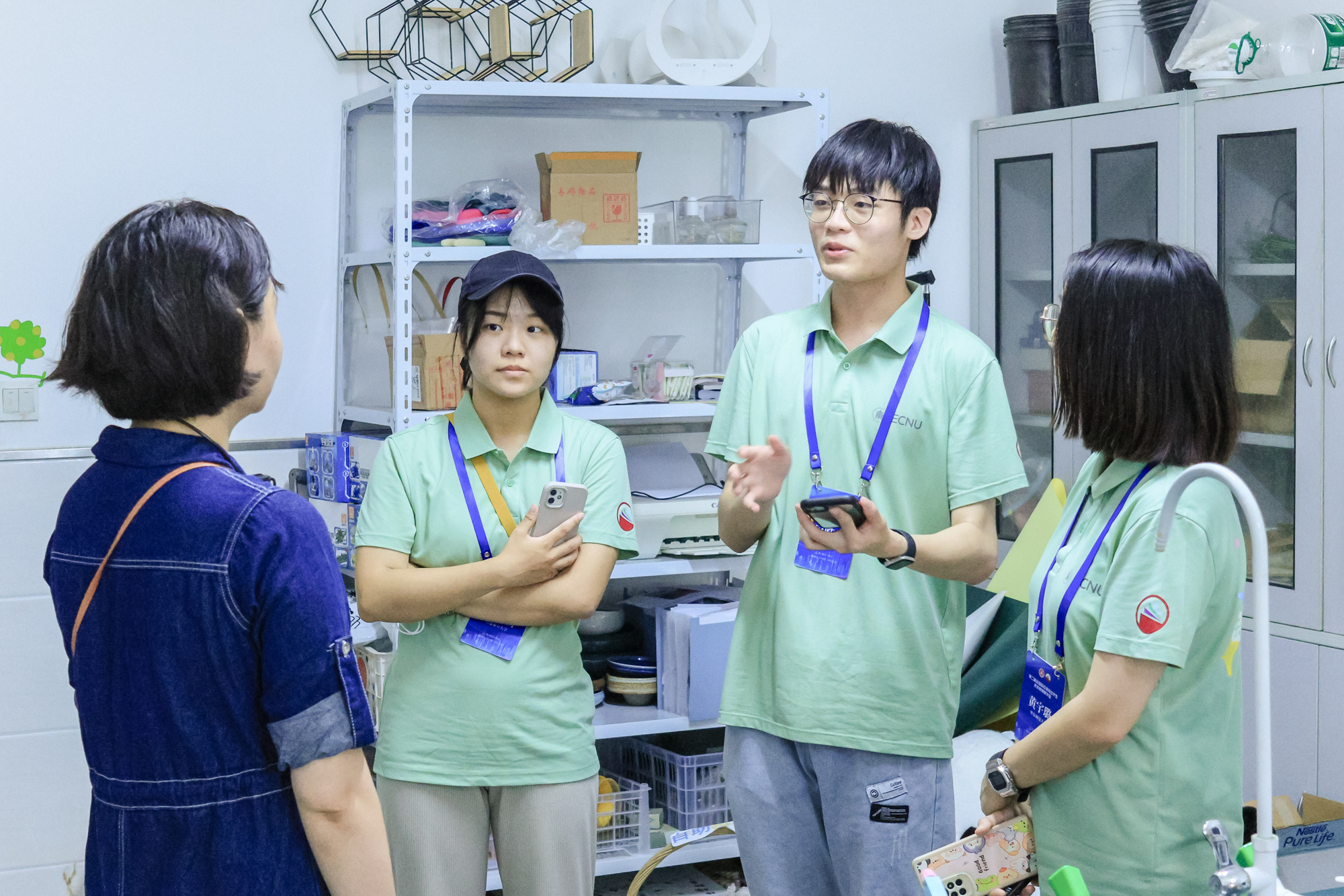 营员们在3245澳门新莆京第四附属中学黄慧婷老师的带领下,了解四附中和华东师大同出一脉的传承关系,沉浸式参访家校共育空间、安全体验教室等特色场馆,感受其“博雅教育”办学特色的彰显,学习具有“博学雅趣 自信乐学 尽责奉献”的现代人才的培养方法。在交流座谈环节,老师们频频出现的金句也唤起同学们的共鸣,“‘多尝试,在亲身实践中寻找方向’让我不再担忧未来教师如何度过新手期、迷茫期,而是需要在‘做’中成长。”
