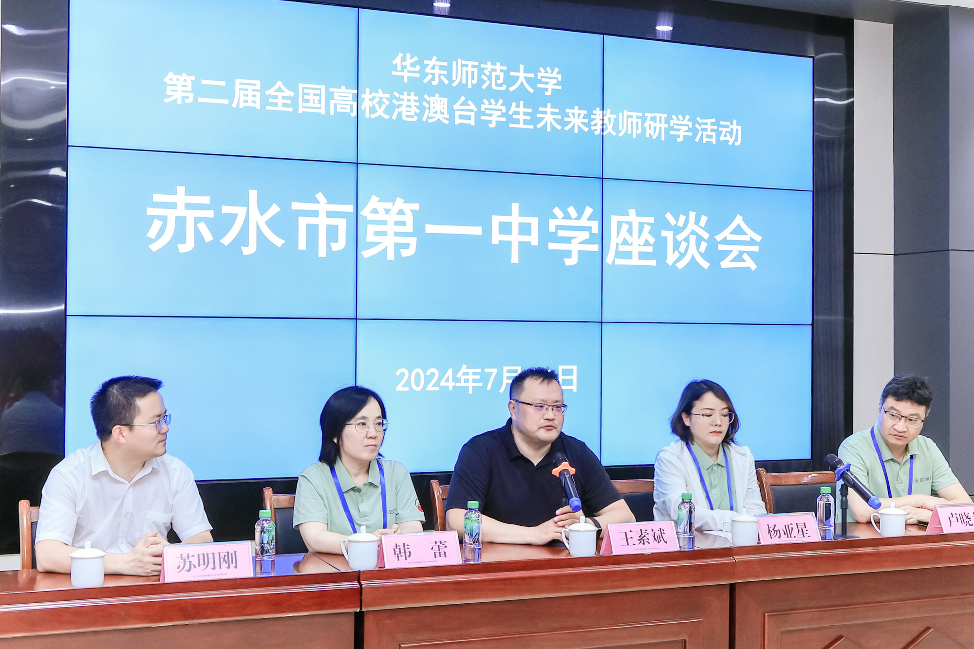在赤水市第一中学,校长苏明刚向同学们介绍了学校的校训理念、办学情况与教育成果,还与未来教师们探讨了山区教师该如何“留得下、教得好”。赤水市教体局局长何勇结合教育家精神视角下中华优秀传统文化中的教师使命,与大家交流了“教师品德修养”的问题。同时,营员们和在座的中学生们很快交流了起来。“从台湾来到大陆,从上海来到重庆、贵州赤水,我发现教育的模式并不是‘一以贯之’的,而是因地制宜、因人制宜,都以学生为中心,帮助学生更自由地发展。”来自台湾东华大学的台湾籍营员杨舒媛结合教育经历和研学观察比较后说道。
