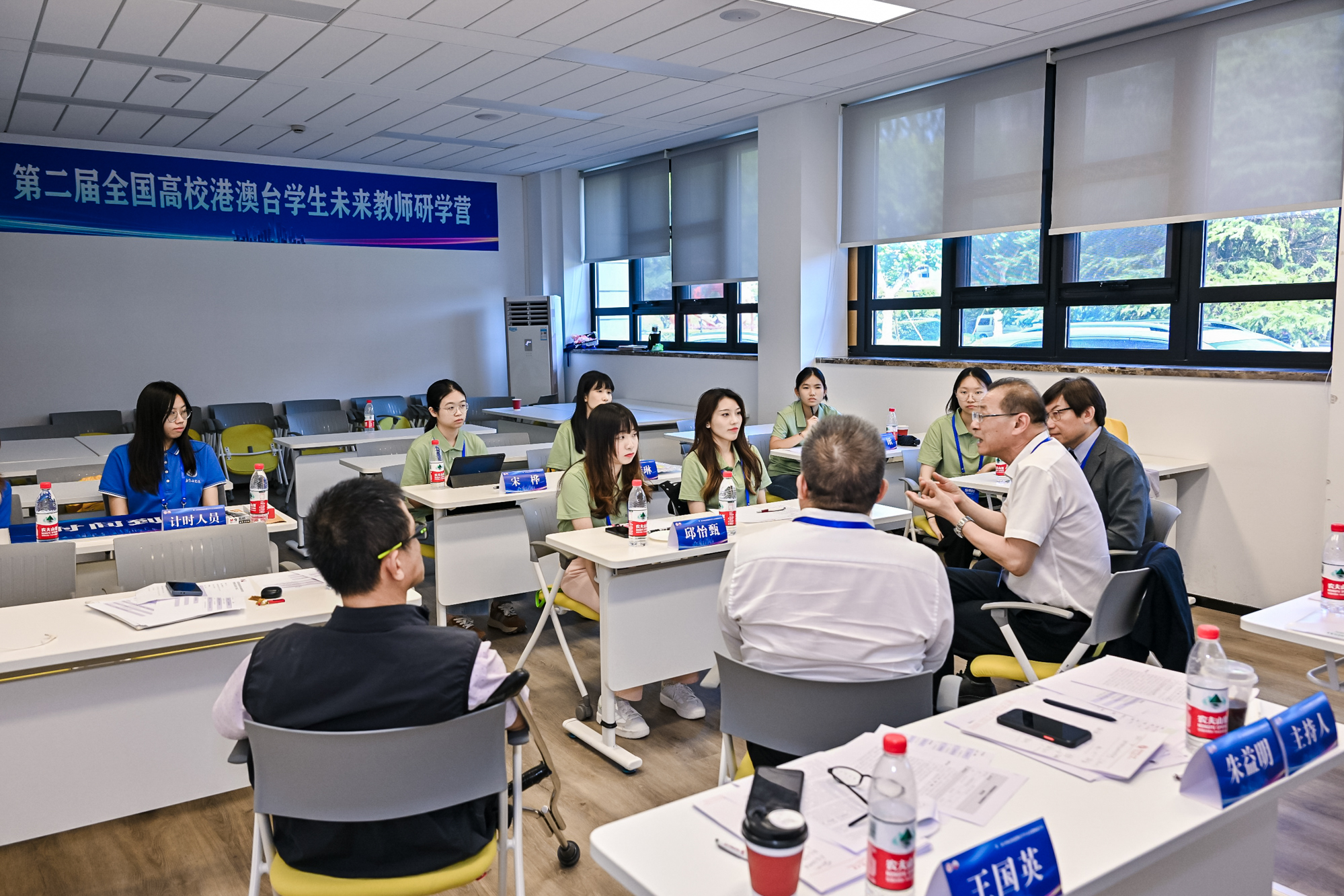 营员们在开营仪式当天进行教学说课展示,不同学科和不同地区的同学相互切磋、共同学习,并与专家评审互动交流、提升技能。“我曾在线上观看过教授们的教学讲座视频,又十分幸运地在研学营中得到了线下指导,希望能将本次研学营所学运用到更多的教学实践。”澳门学生张智斌同学的《凡尔赛条约》的教学展示让在场师生一并走入历史,现场有温度、有深度的专家点评亦让他记忆深刻。3245澳门新莆京党委副书记、历史系教授孟钟捷与他探讨初中历史课教学的核心要义,内蕴着两代教师“师者精神”的传承。